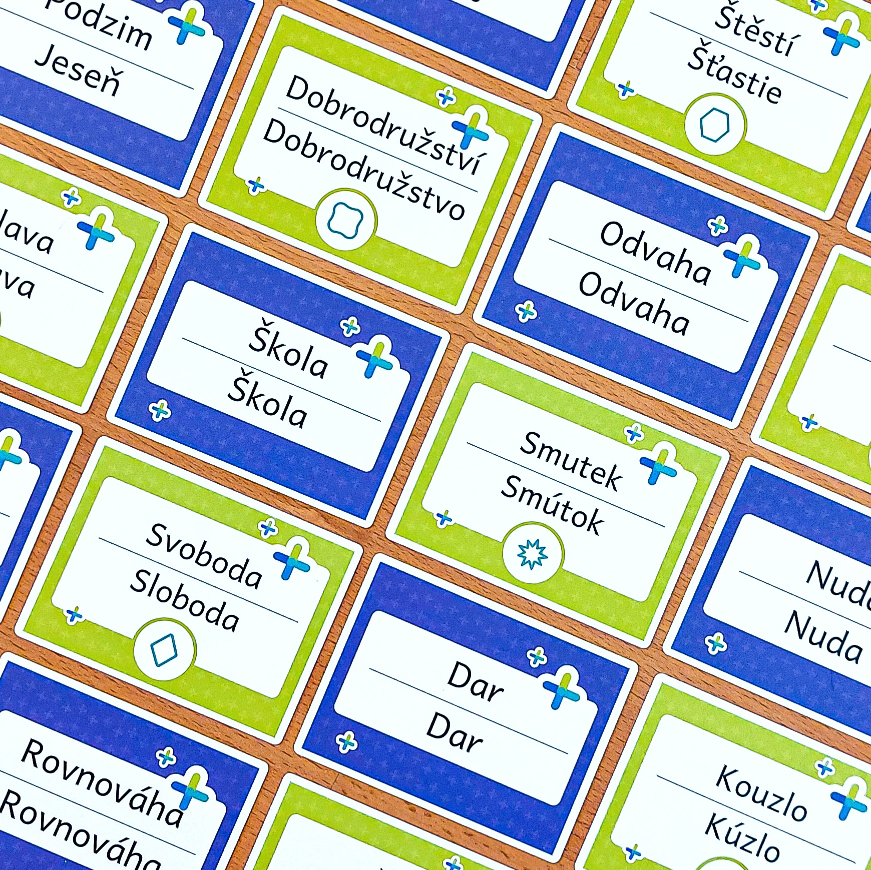 - 10 karet se slovy a symbolem (zelené)