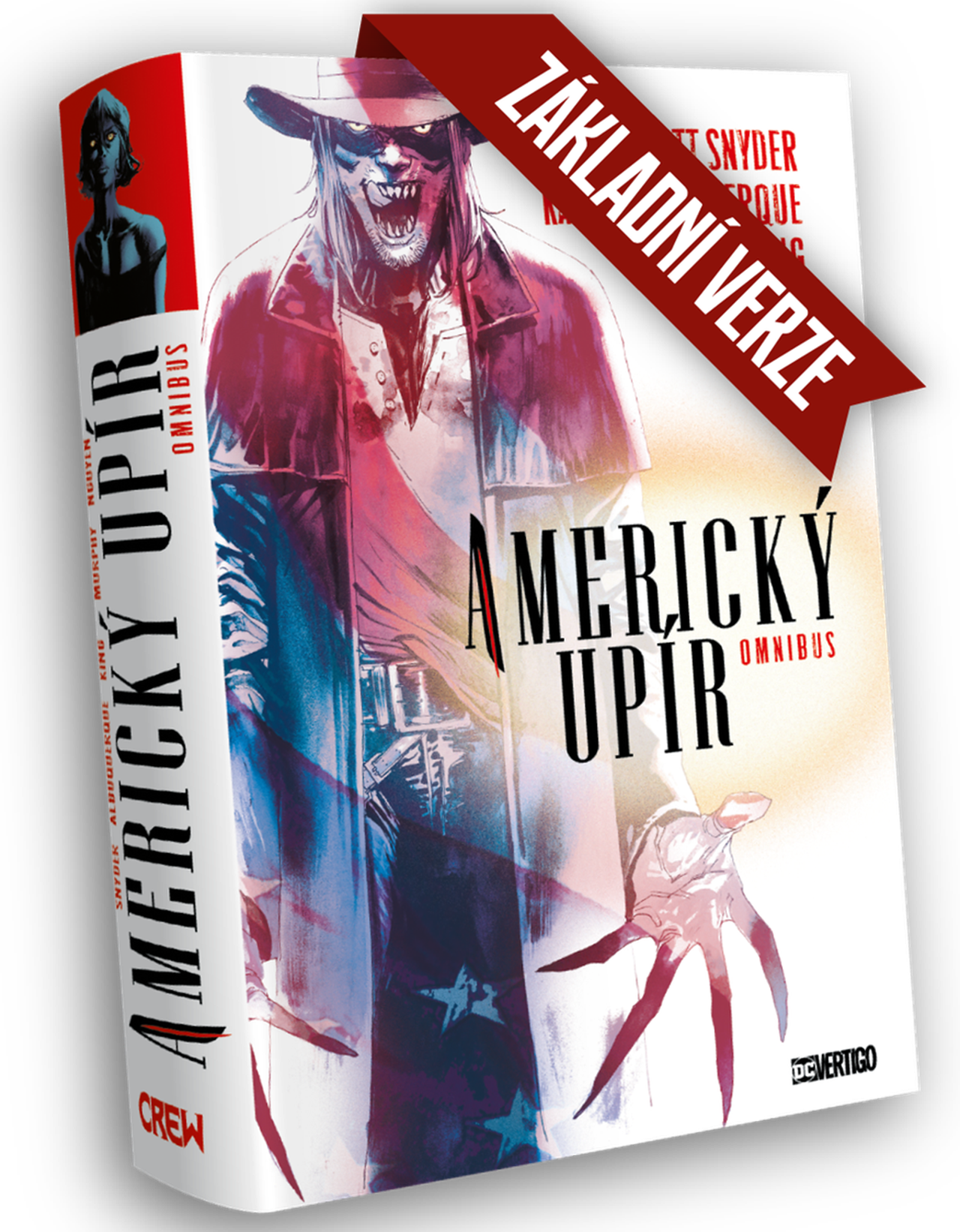 Upír pro nové století. Skinner Sweet je skrznaskrz zkažený pistolník – lstivý, nemilosrdný a nebezpečný jako chřestýš. A to bylo ještě předtím, než na Divoký západ přijeli evropští upíři a proměnili Skinnera v opravdovou nestvůru, silnější druh upíra imunního vůči slunečnému svitu, amerického upíra, jenž nenávidí veškeré své aristokratické evropské předky. Ale když Skinnerova válka s jeho předchůdci přiměje tajnou společnost Vazalové Jitřenky k tomu, aby se pustila do boje s oběma druhy upírů, Skinner si k sobě vybere první upírskou posilu: protloukající se mladistvou herečku Pearl Jonesovou. AMERICKÝ UPÍR je kronika dějin nového druhu upíra, generační epopej, která líčí krvelačnost skrytou v samých základech nejvýraznějších období Spojených států. Vydejte se za tímto temným symbolem krvavé cesty Nového světa v ikonických érách americké historie, od Divokého západu konce devatenáctého století, přes oslňující klasický Hollywood začátku dvacátého století, mafiány řízené Las Vegas, a ještě mnohem dál. Souborné vydání komiksu AMERICKÝ UPÍR od SCOTTA SNYDERA (BATMAN, TEMNÉ NOCI – METAL) s kresbami od RAFAELA ALBUQUERQUEA (ALL-STAR BATMAN, BATGIRL) obsahuje prvních 34 sešitů série včetně příběhu zrodu Skinnera Sweeta, jejž nesepsal nikdo jiný než hororová legenda STEPHEN KING (To, Osvícení) a několik desítek stran s bonusovým materiálem.