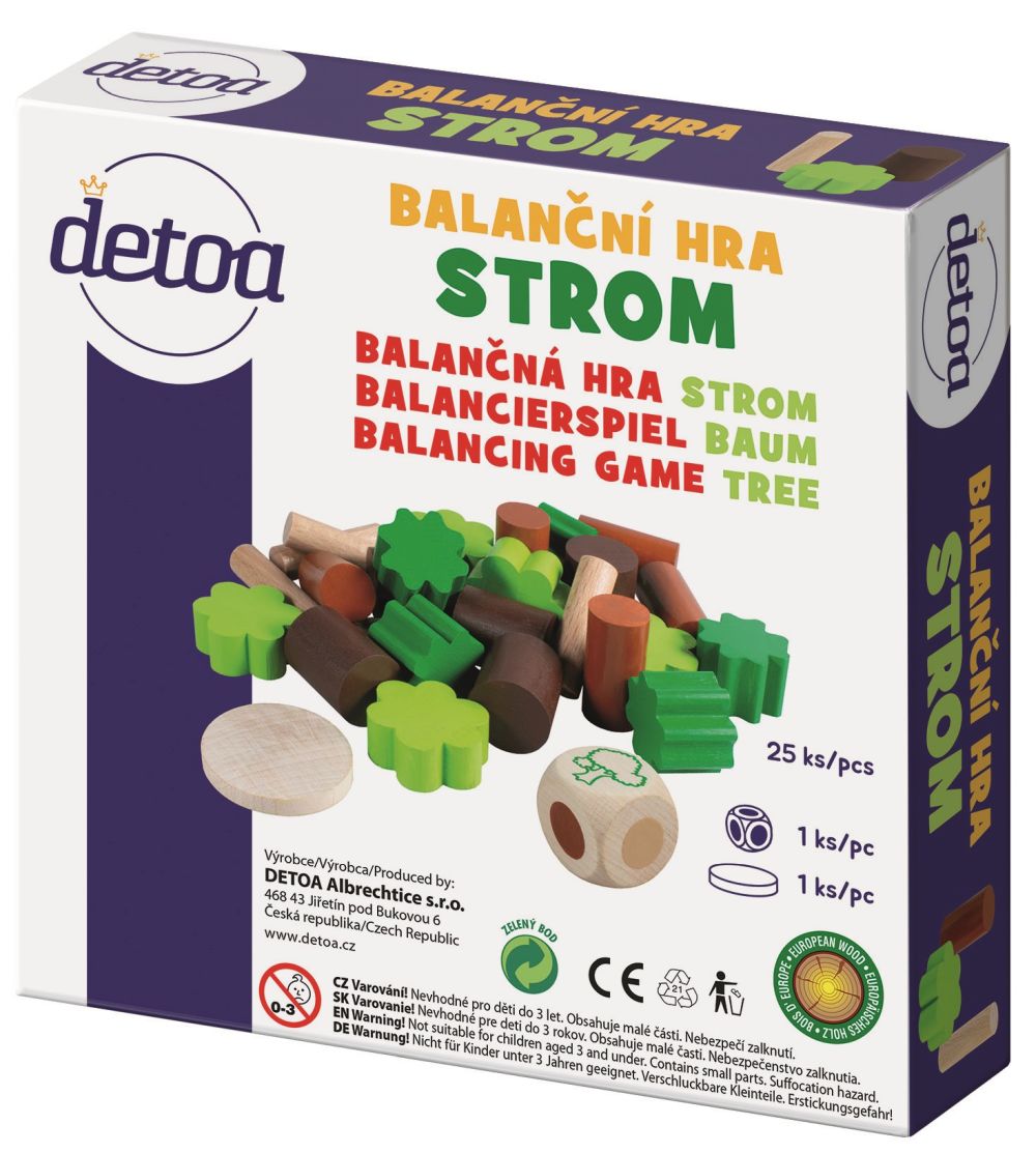Balanční hra Strom slouží k rozvoji jemné motoriky rukou. Hráči se mohou v umísťování kamenů střídat dle hozených barevných bodů na hrací kostce, která je součástí balení.