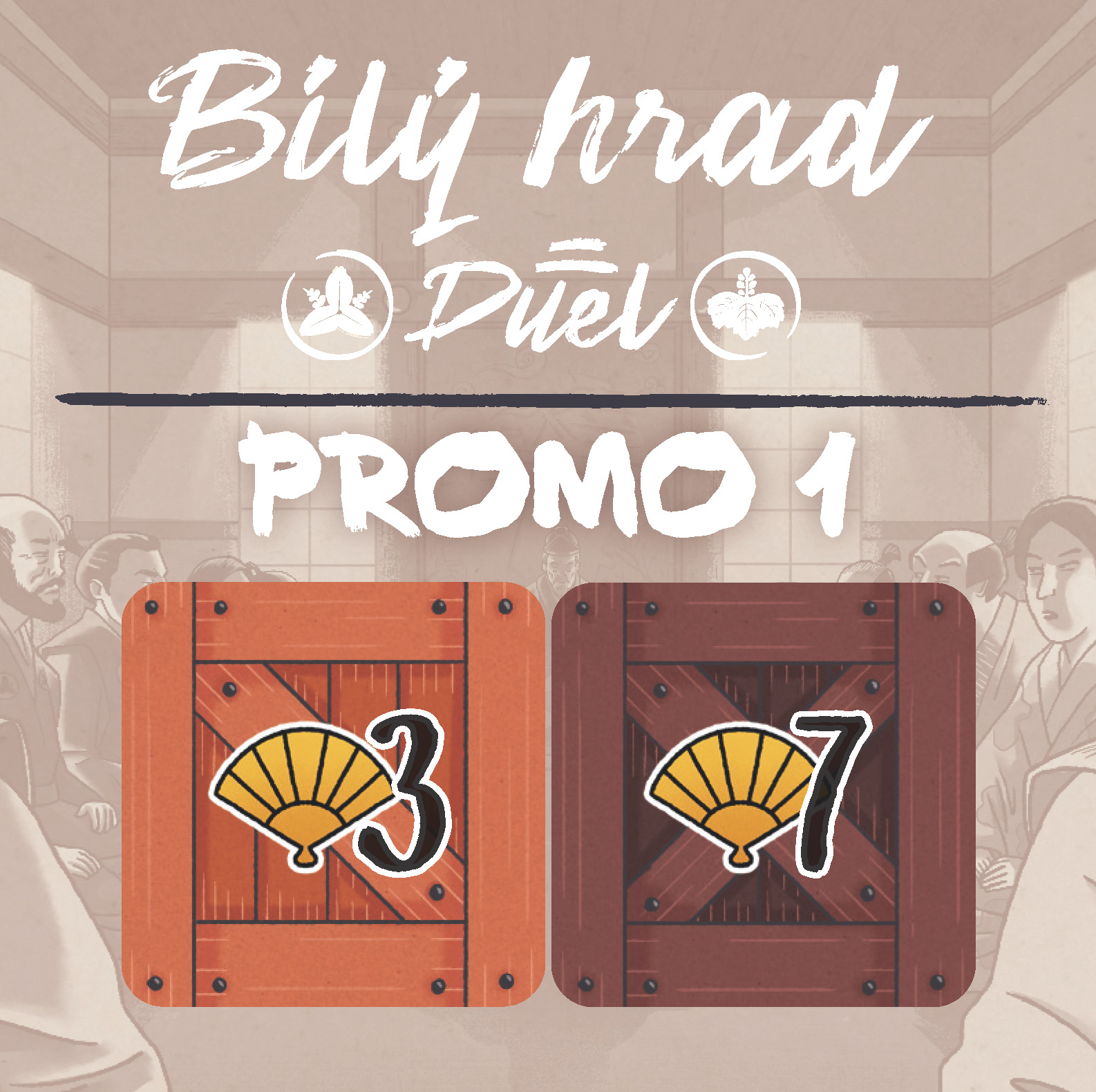 Ve hře Bílý hrad: Duel se přenesete do Japonska 16. století, kdy nečekaný příchod Portugalců na ostrov Tanegašima odstartoval období Nanban – století intenzivního kulturního a obchodního kontaktu se Západem. Do země proudily lodě naložené mušketami, hedvábím a cukrem, zatímco Japonsko vyváželo stříbro z dolů Iwami Ginzan. Tento výměnný obchod posílil mocenské ambice jednotlivých daimjóů, kteří soupeřili o vliv a prestiž. V centru tohoto zápasu stál majestátní hrad Himedži – Bílá volavka – strategická pevnost, kterou daimjóové vylepšovali díky novým technologiím a bohatství ze zahraničí. Hra vás vtáhne do tohoto období soupeření, diplomacie a budování moci. Bílý hrad: Duel je strategická hra pro dva hráče, ve které se střídáte v tazích během dvou kol – vykládacího a stahovacího. V každém tahu umisťujete nebo odebíráte válečky luceren, čímž aktivujete různé oblasti svého panství a získáváte odměny. Každý tah zahrnuje volitelné přeuspořádání žetonů aktivace, výběr akce (umístění nebo odebrání válečku), zisk odměny lucerny a provedení dvou sousedících akcí – například nákup karet vlivu, obchodování, výcvik, pohyb dvořana po společenském žebříčku nebo umístění pečetí do zahrad. Hráči sbírají body klanu během hry i při závěrečném bodování, které zohledňuje nasbírané symboly, pozice na žebříčku, zboží a vylepšené karty. Vítězem se stává ten, kdo nejlépe využije své zdroje, taktiku a načasování akcí k získání největšího vlivu na Dvoře bílé volavky. Bude to právě váš klan? Hra je určena pro 2 hráče od 10 let.Pravidla jsou v češtině. Herní materiál je jazykově nezávislý. Počty a velikosti karet:57 ks 44x68 mm Nabídka obalů na karty je zde. Hra obsahuje: 57 karet8 destiček cvičiště6 žetonů aktivace20 mincí20 pečetí daimjóa,2 destičky bodů6 destiček společenského žebříčku8 žetonů zahrad4 žetony změny aktivace6 žetonů zboží2 desky osobních panství1 herní plán12 válečků luceren1 žeton začínajícího hráče6 žetonů lokací2 dvořané (dřevěné figurky)6 kostiček jako ukazatele zdrojů2 ukazatele bodů klanů16 pečetí klanů1 pravidla Česká pravidla ke stažení zde. Představení hry: Hraní hry a dojmy: