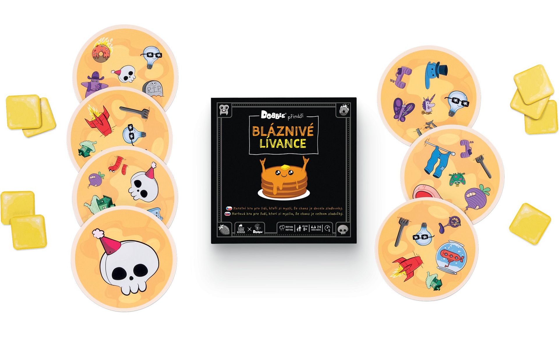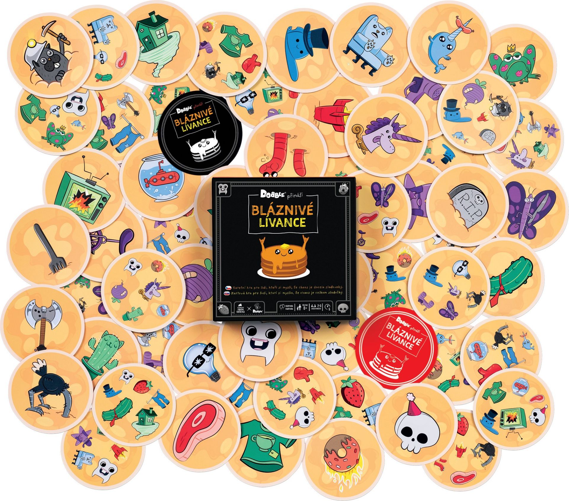 Představujeme vám úplně první karetní hru od tvůrců Výbušných koťátek a Bum Bum Burrita, která přináší šermířské souboje pomocí měkkých mečů. V této hře se hráči hádají o karty a řeší své spory údery pěnovými meči... přesně tak, jak to dělají dospělí! Jak na hru? Hra je jednoduchá! Cílem je sesbírat 3 shodné karty. Když potřebujete stejnou kartu jako jiný hráč, musíte o ni bojovat! Vezměte si určité množství karet a položte je na hromádky uprostřed stolu. Každý hráč si prohlédne karty na stole a určí, která hromádka mu pomůže dokončit jeho sadu. Jakmile se rozhodnete, kterou hromádku chcete, napočítejte do 3 a všichni současně ukažte na vybranou hromádku. Pokud jste jediní, kdo na hromádku ukázal, získáváte všechny karty na této hromádce. Pokud však na hromádku ukáže i jiný hráč, musíte se o ni utkat pomocí mečů. Pravidla pro tuto bitvu jsou popsána na hromádce karet, o kterou bojujete. Hrajte dále, dokud jeden z hráčů nezíská 3 sady stejných karet. Ten se stává vítězem hry! Tato hra je skvělá pro děti i dospělé a můžete ji hrát kdykoli během dne nebo večera. Věk a výška nehraji roli! Hlavní je, jestli máte chuť se pobavit a zasmát při „boji“ s falešnými meči. Užijte si spoustu zábavy a napětí s touto jedinečnou hrou, která přinese smích a soutěžení do vašich setkání s přáteli a rodinou!