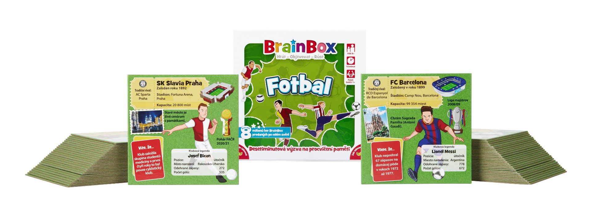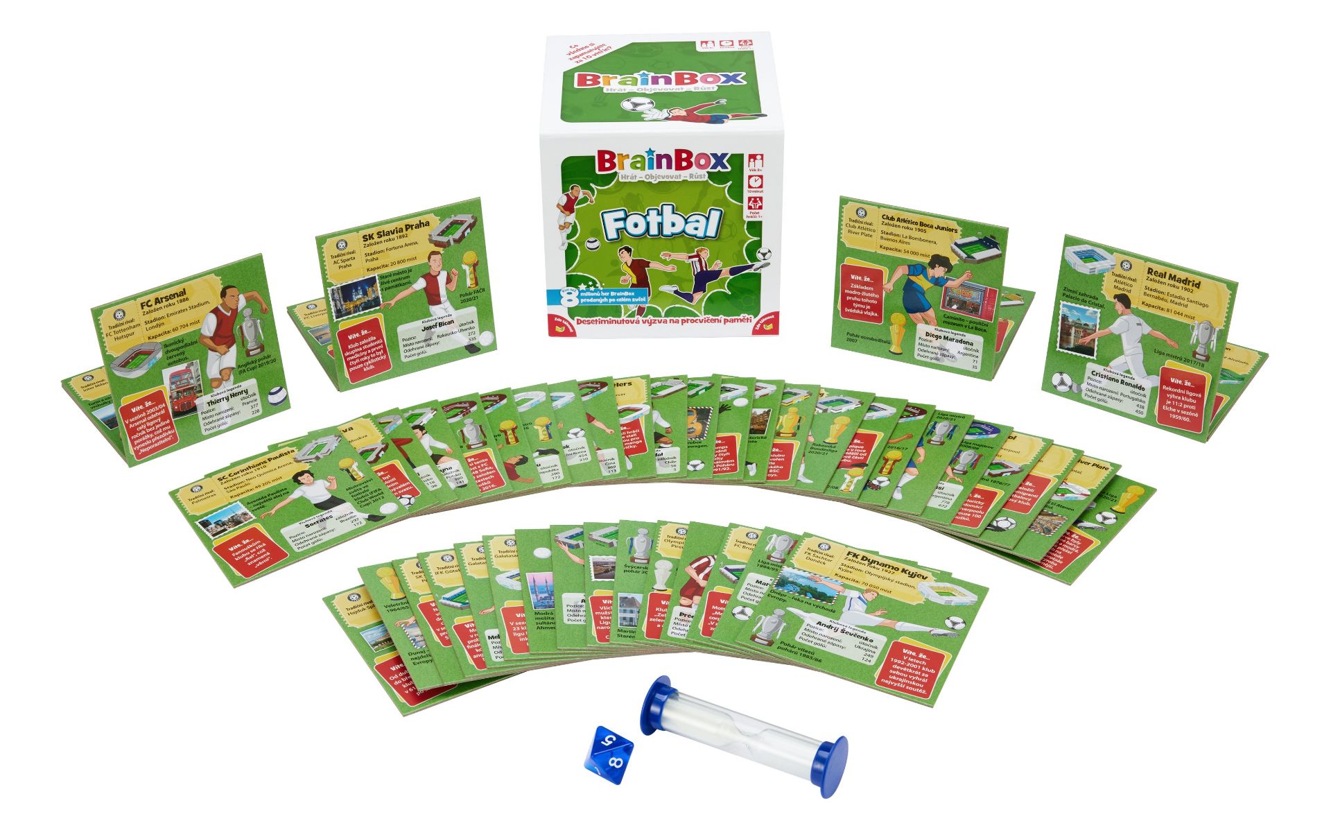 Objevte svět fotbalu s hrou "BrainBox - Futbal"! Tato zábavná paměťová a postřehová karetní hra vás provede mezi nejznámějšími fotbalovými týmy světa, jejich stadiony a ikonickými klubovými legendami. Během hry budete mít 10 vteřin na to, abyste si zapamatovali co nejvíce informací z karty, a poté odpovědět na otázku. Hra obsahuje 55 hracích karet s ručně malovanými ilustracemi, které zahrnují nejen evropské týmy, ale také ŠK Slovan Bratislava a české kluby SK Slavia Praha a AC Sparta Praha. BrainBox Futbal nejenže poskytuje skvělou zábavu pro malé i velké fanoušky, ale také pomáhá rozvíjet kognitivní dovednosti, jako je postřeh a paměť, což přispívá k celoživotnímu vzdělávání. Jak na to? Stačí si vzít kartu, zapamatovat si obrázky během 10 vteřin, hodit kostkou a poté odpovědět na otázku související s kartou. Balení obsahuje 55 karet, pravidla, přesýpací hodiny a kostku. Připravte se na vzrušující zábavu plnou fotbalových informací!