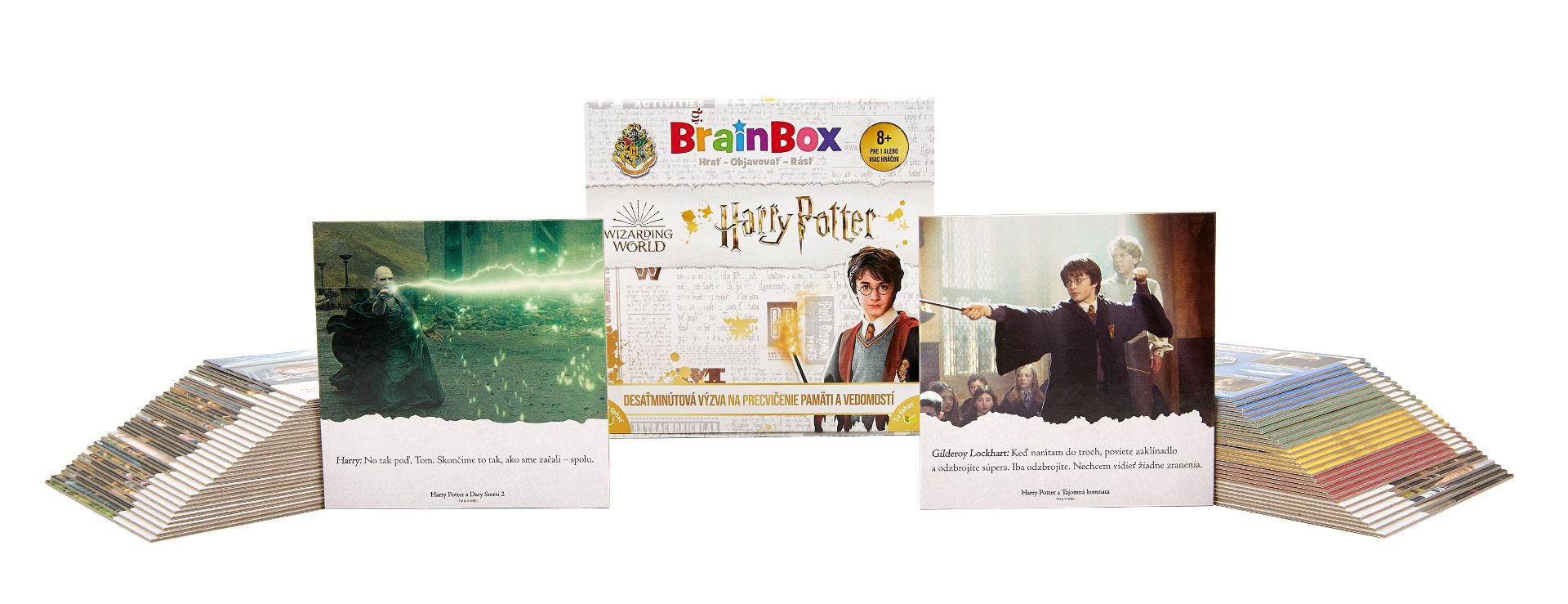 BrainBox je zábavná kartová hra na pamäť a pozornosť, ktorá preverí vaše pozorovacie schopnosti. Čo si zapamätáte za 10 sekúnd? Táto edícia hry zahŕňa všetkých osem filmov o Harrym Potterovi a je ideálna pre začínajúcich čarodejníkov.