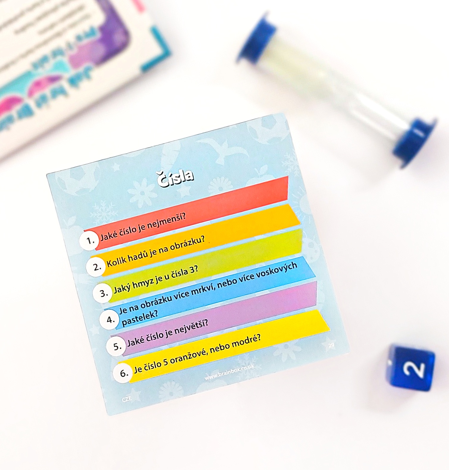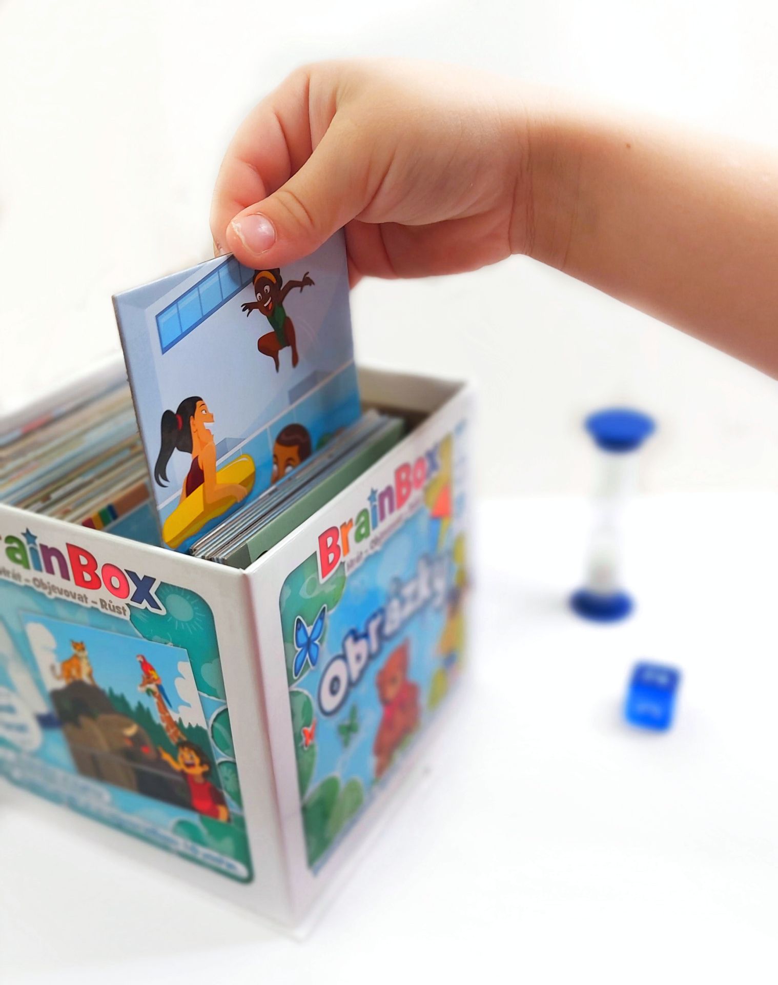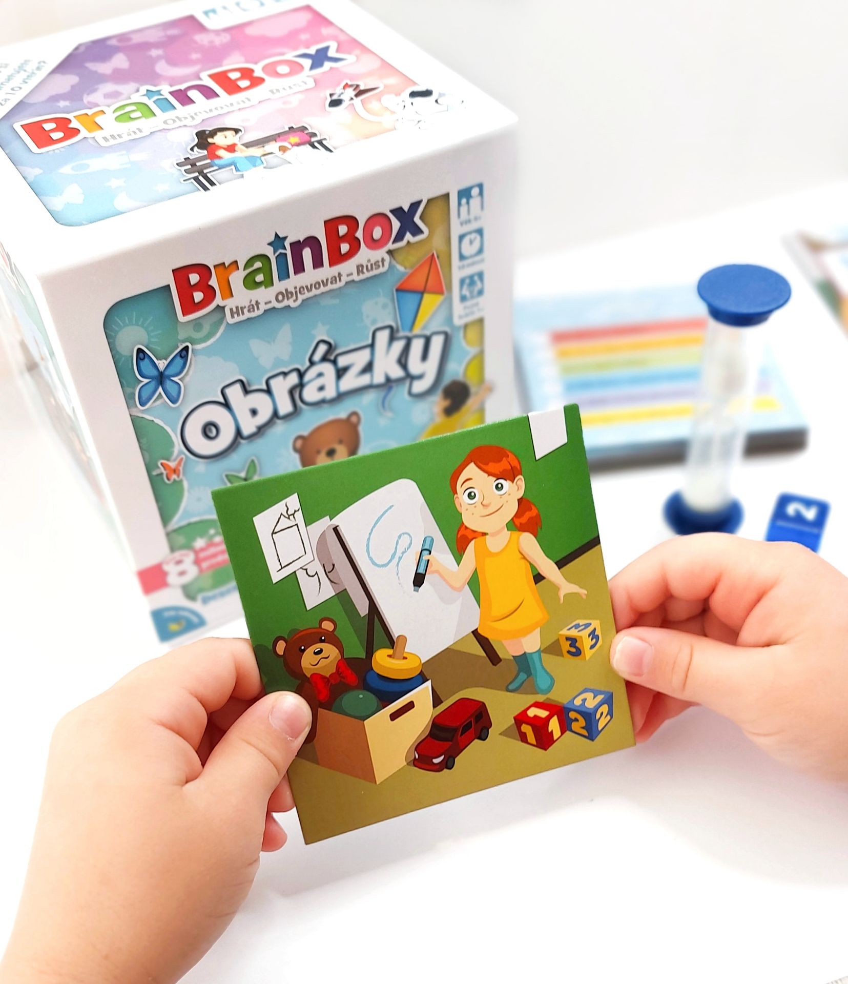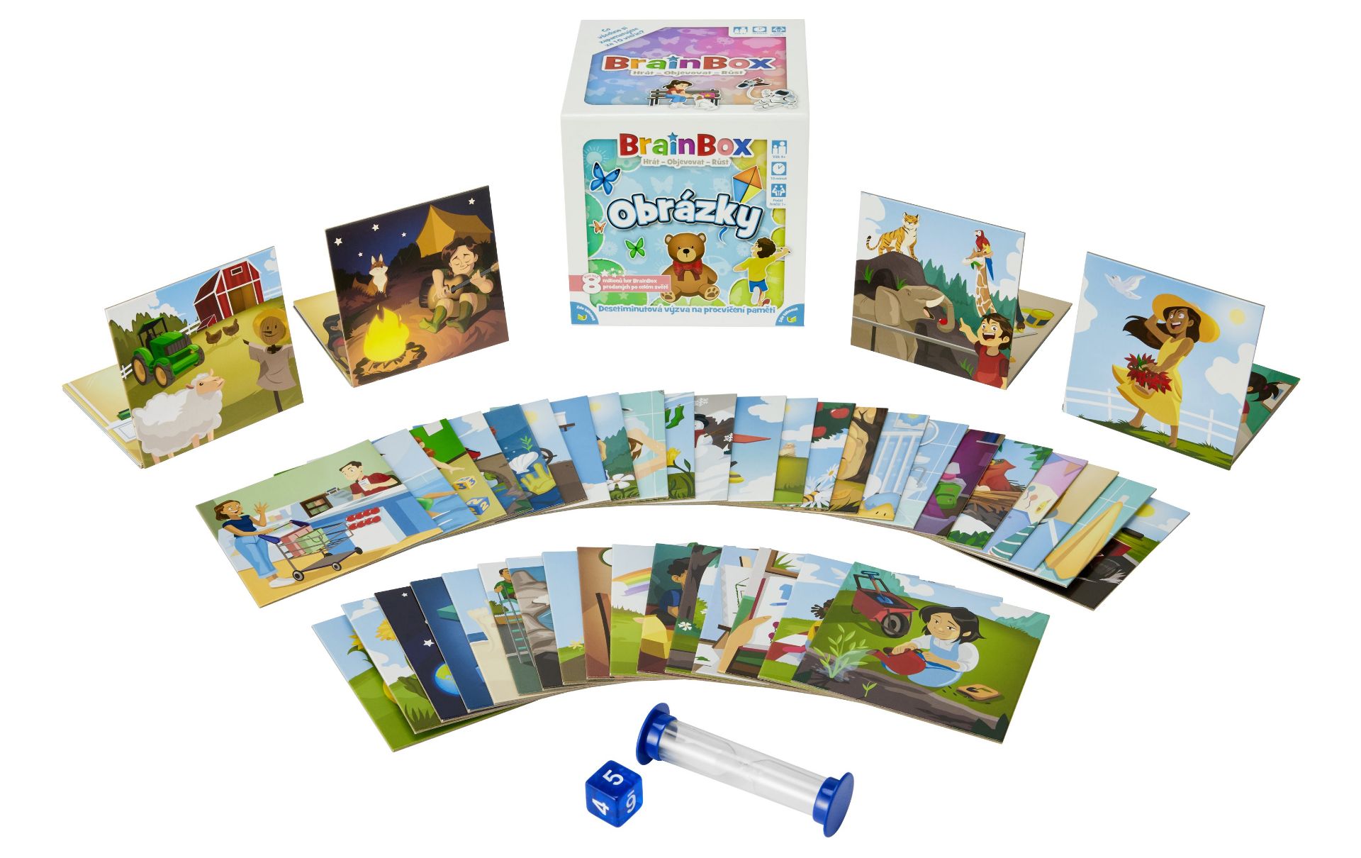 Objevte svět kreativity a poznání s hrou "BrainBox - Obrázky"! Tato zábavná paměťová a postřehová karetní hra vás provede každodenními situacemi prostřednictvím obrázků, které vám skvěle otestují smysl pro detail. Budete mít pouhých 10 vteřin na to, abyste si zapamatovali co nejvíce z karty. Hra obsahuje 55 hracích karet s ručně malovanými ilustracemi, které zahrnují situace známé jak dětem, tak dospělým. Odpovědi na otázky jako například barva kartáčku na zubech, počet hvězd na noční obloze nebo množství slepiček na obrázku jsou přímo na kartě. Kromě zábavy tato hra pomáhá dětem rozvíjet jejich kognitivní dovednosti, postřeh a paměť, což tvoří základy celoživotního učení. Jak na to? Stačí si vzít kartu, zapamatovat si detaily, hodit kostkou a odpovědět na otázku. Balení obsahuje 55 karet, pravidla, přesýpací hodiny a kostku. Připravte se na vzrušující hru plnou učení a zábavy s BrainBox Obrázky!