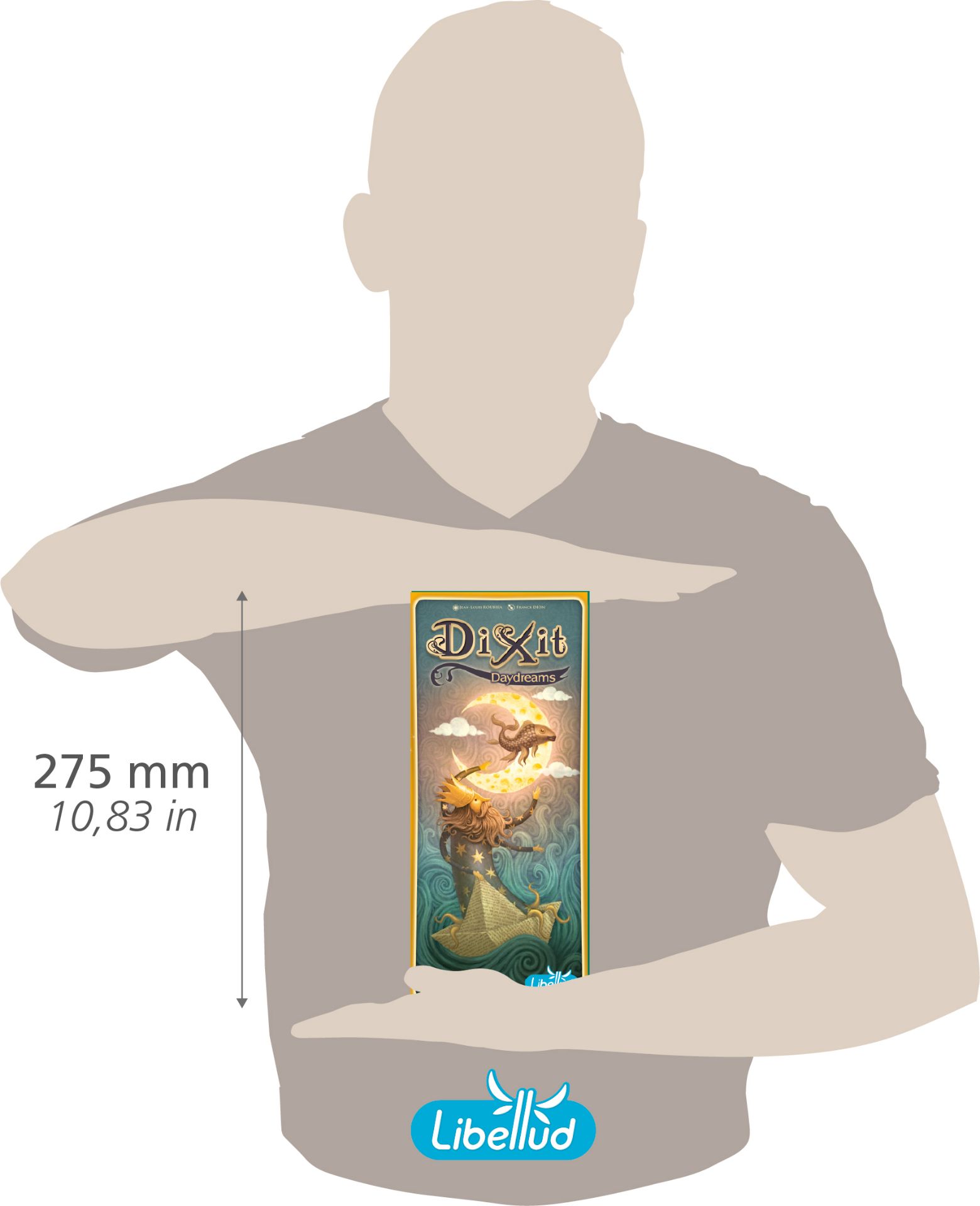 Obohaťte svůj herní zážitek s rozšířením "Dixit - Nové karty"! Toto rozšíření přináší vynikajících 84 zbrusu nových obrázkových karet, které můžete kombinovat se základní hrou, a tím do vašeho hraní vnese nový vítr a zaručí další hodiny skvělé zábavy. Ilustrace, vytvořené talentovaným Sébastienem Telleschim, jsou plné živých barev a odhalují fantastický pohled na svět, ve kterém žijeme, a přinášejí do hry zcela nový rozměr. **Jak se hraje Dixit:** V hře Dixit se stanete vypravěčem, který vymýšlí vlastní příběhy. Díky jednoduchým pravidlům si tuto zábavu mohou užít hráči napříč všemi věkovými kategoriemi. V každém kole se vypravěčem stane jiný hráč a získává body tím, že ostatní hádají jeho kartu na základě poskytnuté nápovědy. Je však důležité, aby byla nápověda chytrá, protože pokud ji uhodnou všichni hráči, vypravěč nezíská žádné body. Ostatní hráči získávají body tím, že správně identifikují vypravěčovu kartu a získávají hlasy ostatních hráčů za své chytré výběry karet. **Konec hry:** Hra končí ve chvíli, kdy jeden nebo více hráčů získá 30 bodů a více. Vítězem se stává hráč s nejvyšším počtem bodů. Toto rozšíření není samostatnou hrou a vyžaduje základní hru Dixit nebo Dixit Odyssey. Připravte se na nové příběhy a vzrušující chvíle s "Dixit - Nové karty"!