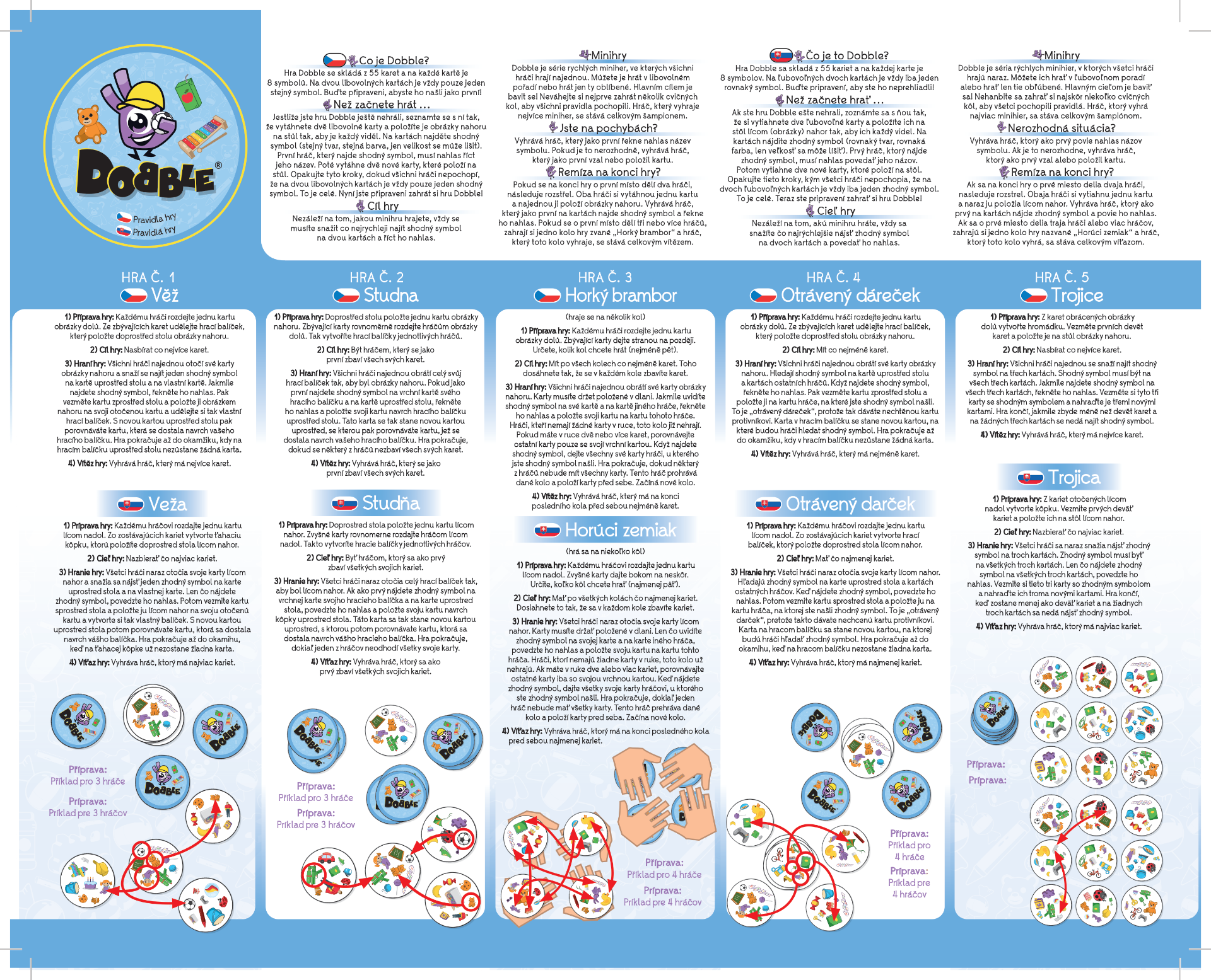 Objevte zábavu s hrou "Dobble - Česká edice"! Tato verze oblíbené hry přináší ikonické symboly z českého prostředí a historie, jako jsou Karel IV., Pražský hrad, Národní divadlo nebo olomoucké tvarůžky a svíčková. Hra se zaměřuje na rychlost, postřeh a reflexy, což ji činí ideální pro všechny, kdo se chtějí bavit! Hra obsahuje 57 různých symbolů a 55 karet, přičemž každé dvě karty mají společný pouze jeden symbol. Dobble nabízí unikátní zábavu a umožňuje hráčům hledat shody na kartách v různých herních verzích, které jsou popsány v pravidlech. S kulatými kartami a jednoduchými pravidly, která lze vysvětlit za pár sekund, je Dobble ideální pro děti i dospělé. Hráči se mohou snadno zapojit a užít si spoustu smíchu a soutěživosti. Plechová krabička zajišťuje bezpečné uložení karet a pohodlnou přepravu, takže si hru můžete vzít s sebou kamkoliv. Vyzkoušejte postřehový fenomén Dobble a přesvědčte se, jak jednoduchá hra může nabídnout tolik zábavy!
