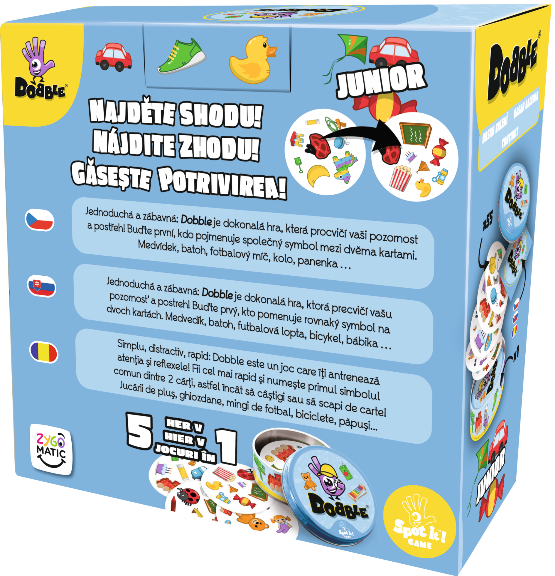 Objevte zábavu s hrou "Dobble - Disney princezny"! Tato vzrušující varianta známé hry Dobble je zaměřena na rychlost, postřeh a reflexy, což z ní činí ideální volbu pro děti i dospělé. Hra obsahuje 57 různých symbolů a 55 karet, přičemž na každé kartě najdete 8 obrázků. Mezi jak dvěma libovolnými kartami je vždy pouze jeden společný obrázek, což dělá hru ještě napínavější! Děti se zde snaží najít dvě shodné obrázky na kartách v různých verzích hry, které jsou popsány v pravidlech (v celkovém počtu 5 her). Kulaté karty a jednoduchá pravidla, která lze vysvětlit během několika sekund, usnadňují hru a zajišťují skvělou zábavu pro každého. Plechová krabička zaručuje bezpečné uložení karet a umožňuje snadnou přepravu. Připravte se na postřehový fenomén Dobble a objevte, jak jednoduchá hra může přinést nespočet zábavných momentů! Zažijte kouzlo Disney princezen s "Dobble - Disney princezny" a vychutnejte si každou chvíli hry!