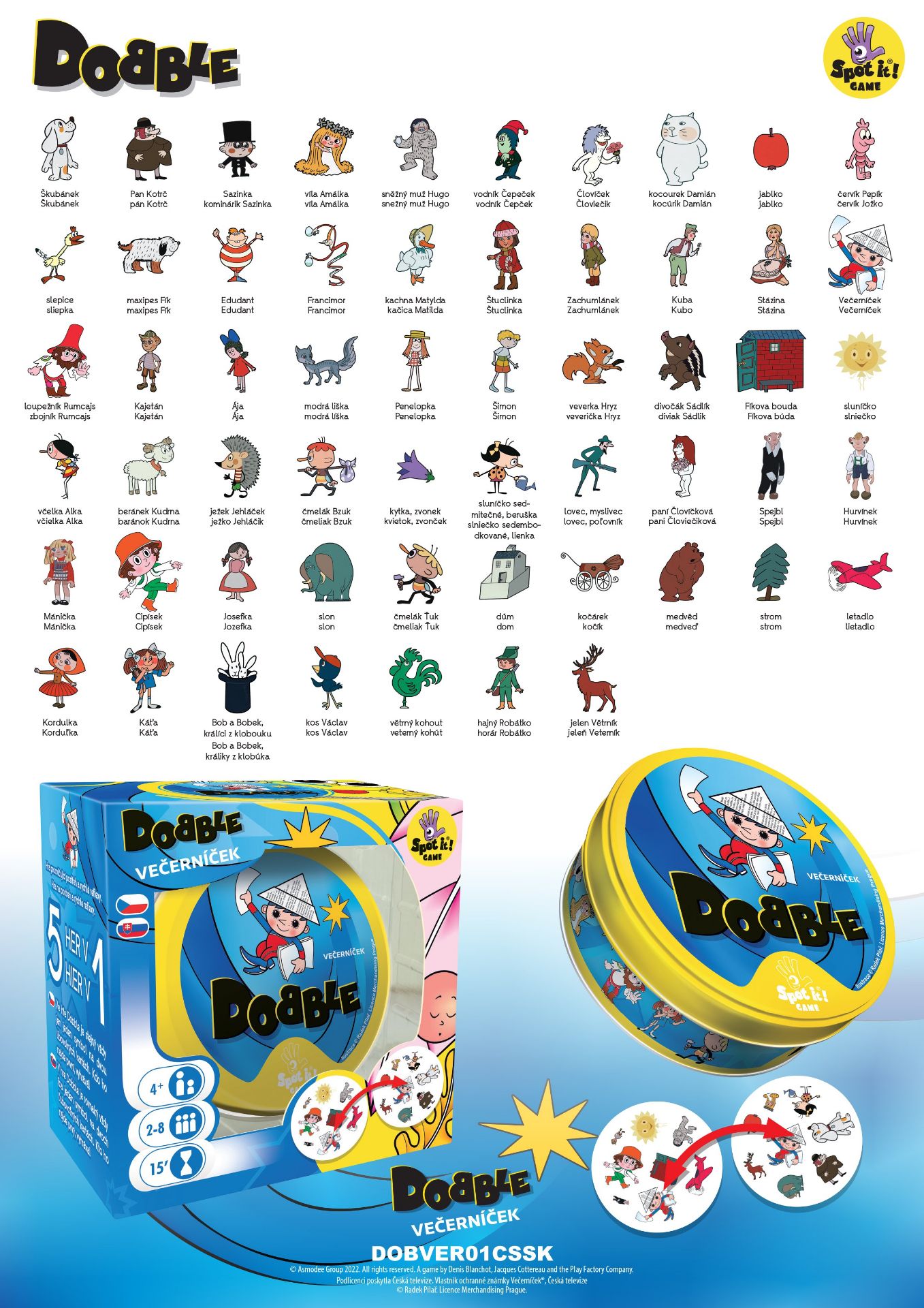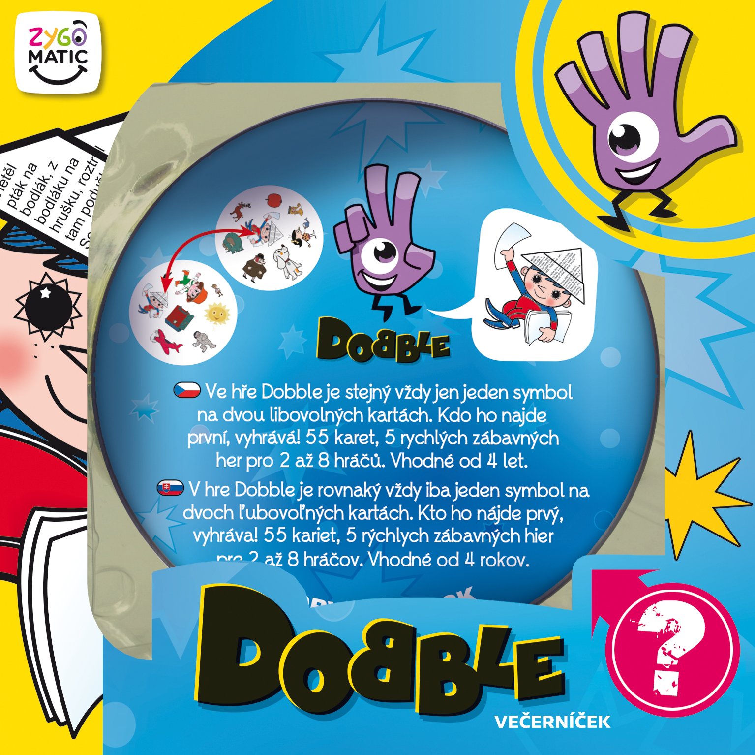 Dobble je chytlavá společenská hra, která se hodí na jakoukoliv párty. Hlavní roli na cestě k vítězství hraje vynikající postřeh. Dobble obsahuje 5 herních módů, jejichž základem je vždy najít stejný obrázek na dvou kartách.