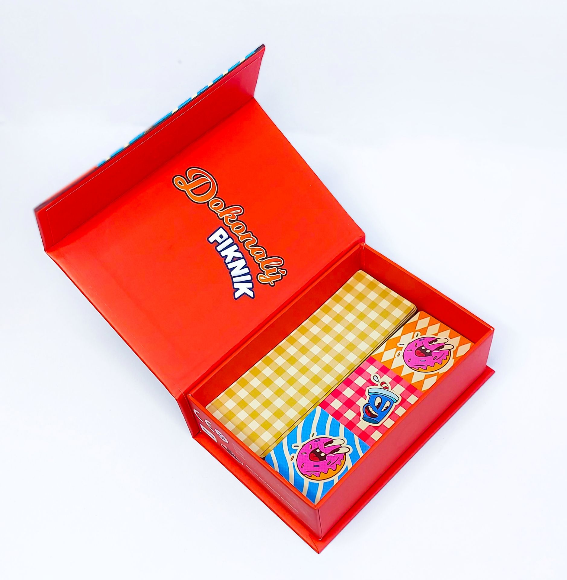 Vydajte se na krásný piknik s hrou "Piknik"! Představte si slunečné počasí a jemný vánek – ideální podmínky pro uspořádání perfektního pikniku. V této zábavné hře si rozdělíte lahodné dobrůtky, rozložíte ubrousky a vytvoříte idylickou atmosféru. Cílem hry je získat co nejvíce bodů chytrým pokládáním karet a seskupováním stejných typů dobrůtek a ubrousků. Hra nabízí dvě varianty hraní a také sólo mód, takže si ji můžete užít v jakékoli společnosti. Připravte se na zábavu a strategické plánování s hrou "Piknik", která přináší nejen odpočinek, ale i soutěživost a radost!
