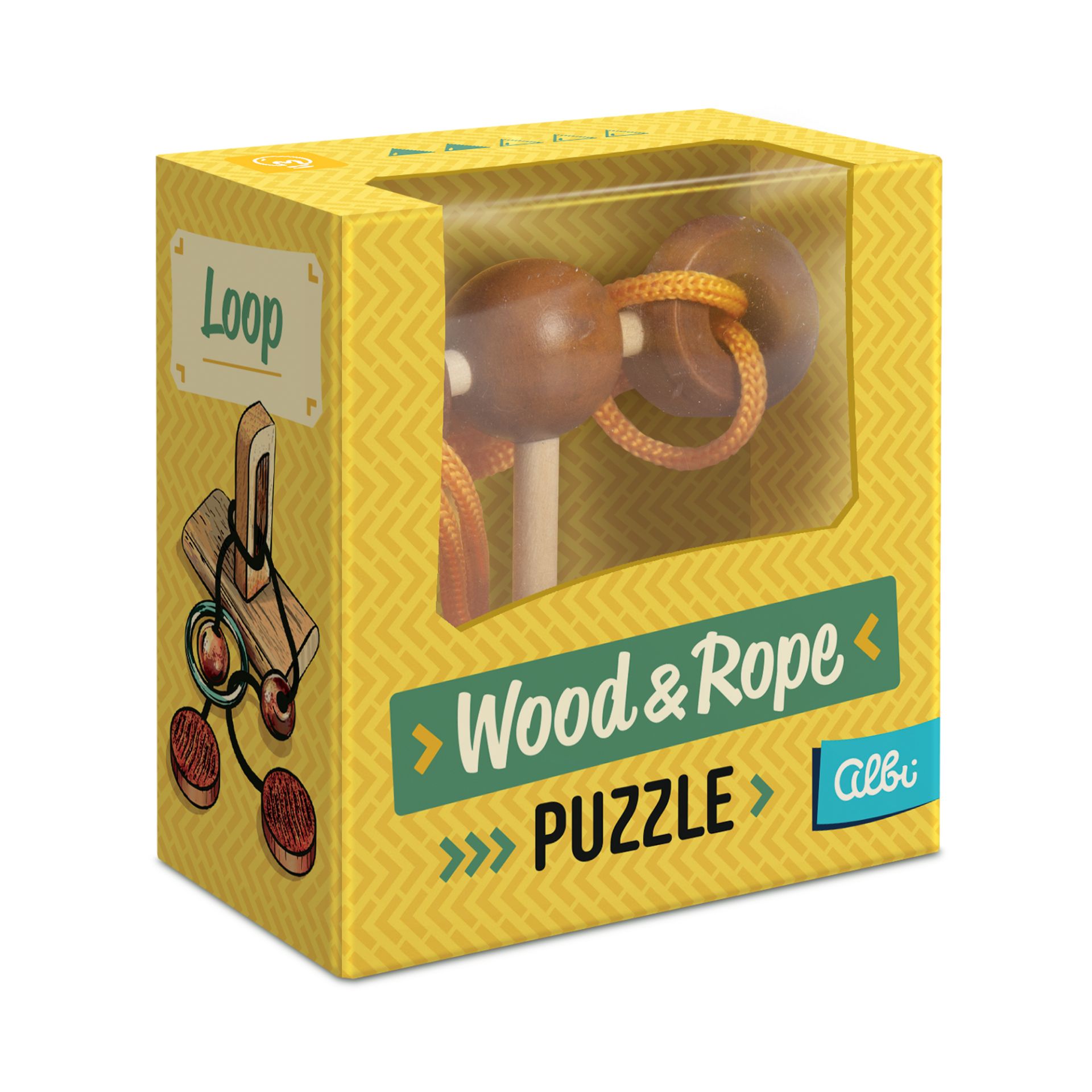 Hlavolam se skládá z různých dřevěných částí propojených provázkem, a vaším úkolem je najít správný způsob, jak je od sebe oddělit nebo spojit.