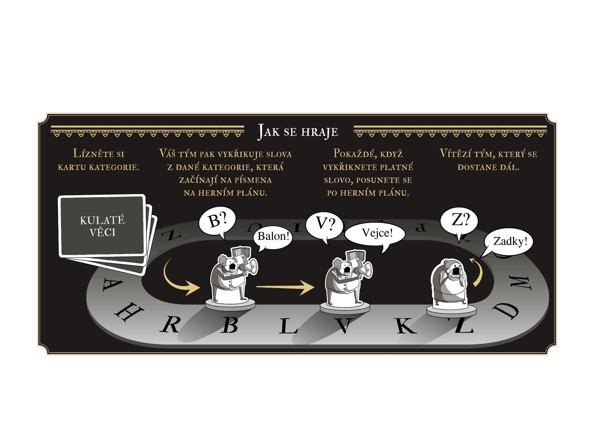 O co vlastně v této hře jde? V krátkosti - váš tým bude vykřikovat slova, která začínají na konkrétní písmeno a zapadají do určité kategorie. Počáteční písmena se změní pokaždé, když zakřičíte správnou odpověď, a pokud váš tým vymyslí více slov než ten druhý, získáte body! Cílem hry je být tím týmem, který jako první získá 12 bodů… protože pak vyhrajete a jistě se zapíšete do dějin!