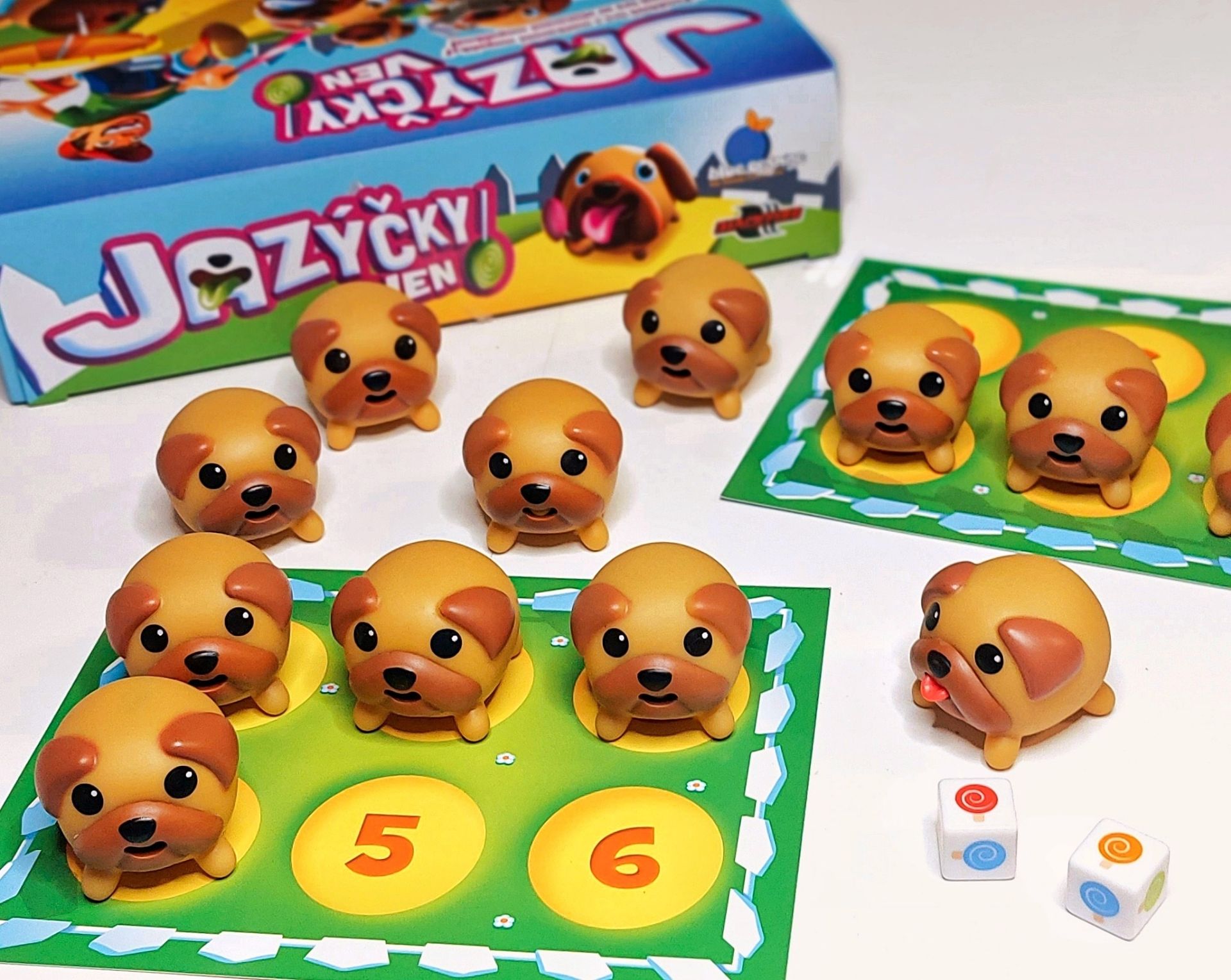 Připravte se na skvělou zábavu s hrou **ACH NE! MOPSLÍCI SNĚDLI VŠECHNA LÍZÁTKA!** V této hravé hře se ocitnete v roli hráče, který se snaží spárovat barevná lízátka hozená na kostkách s mopslíky, kteří mají jazýčky ve stejných barvách jako tato lízátka. Když mopslíky jemně stlačíte, vystrčí jazýčky a ukážou se barvy! **Cílem hry** je být prvním hráčem, který najde shodu mezi šesti lízátky a mopslíky. Hra nabízí naučné prvky a je ideální pro děti, které se chtějí pobavit a zároveň rozvíjet svou postřehovost. **Jazýčky ven!** je nástupcem oblíbené hry *Tučňáci*, přičemž zvířátka