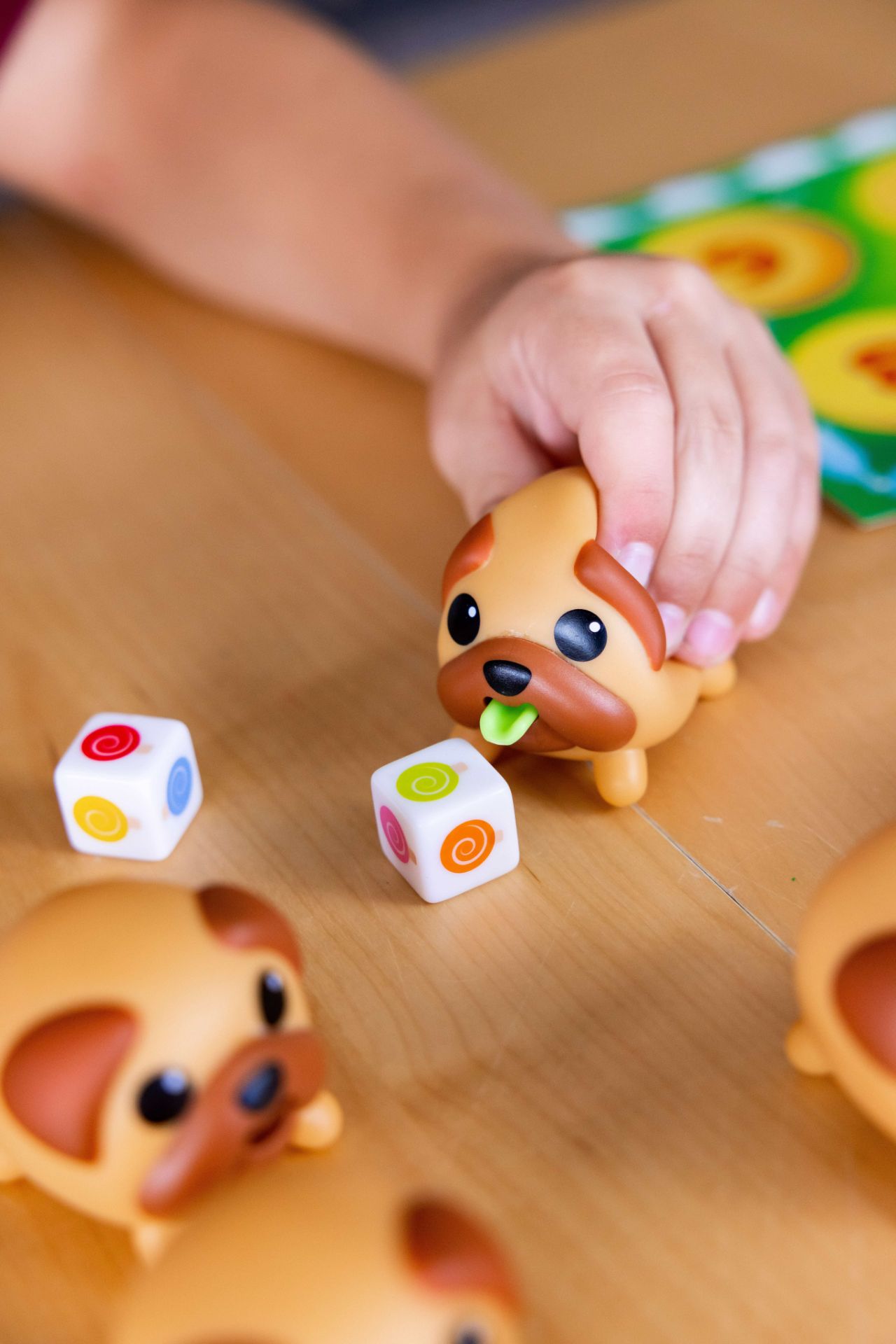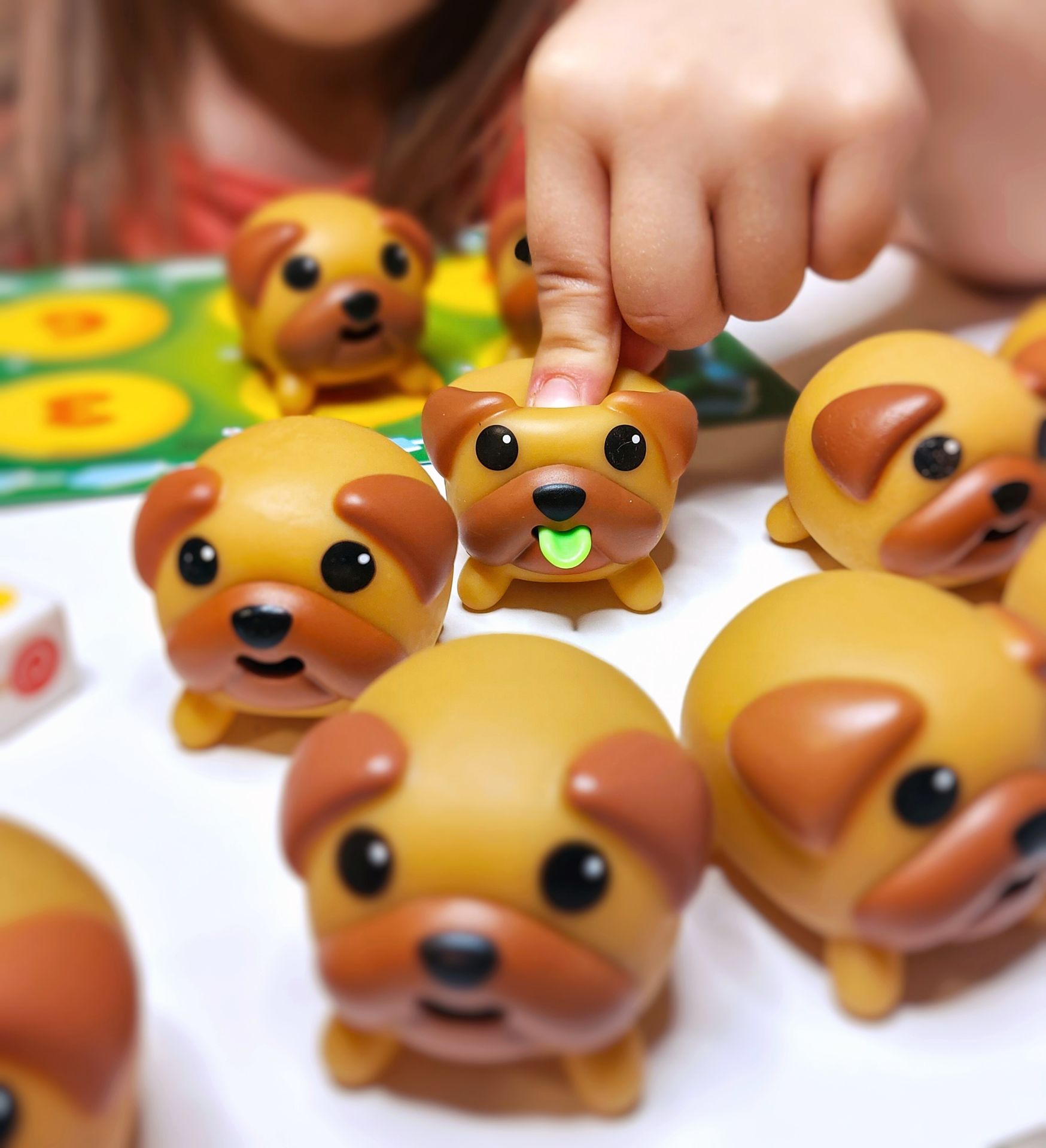 ACH NE! MOPSLÍCI SNĚDLI VŠECHNA LÍZÁTKA! Naštěstí mají teď jejich jazýčky barvu lízátka, které snědli! V každém kole se snažíte spárovat barevná lízátka hozená na kostkách s mopslíky, o kterých si myslíte, že je slízali. Když mopslíky jemně stlačíte, vystrčí jazýčky! Ať jsou roztomilí, tohle jim neprojde... Vítězem se stane hráč, který jako první najde shodu mezi šesti lízátky a mopslíky.