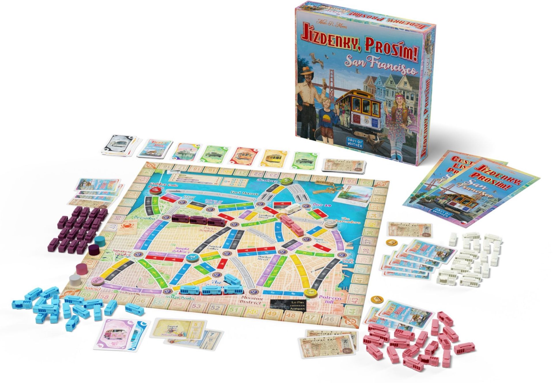Jízdenky, prosím! - San Francisco vás zavede na vzrušující dobrodružství do města San Francisco 60. let, přičemž si můžete užít známou hratelnost ze série Jízdenky, prosím! — sbírejte karty, obsazujte trasy a získávejte jízdenky, přičemž celou hru zvládnete za maximálně 15 minut.