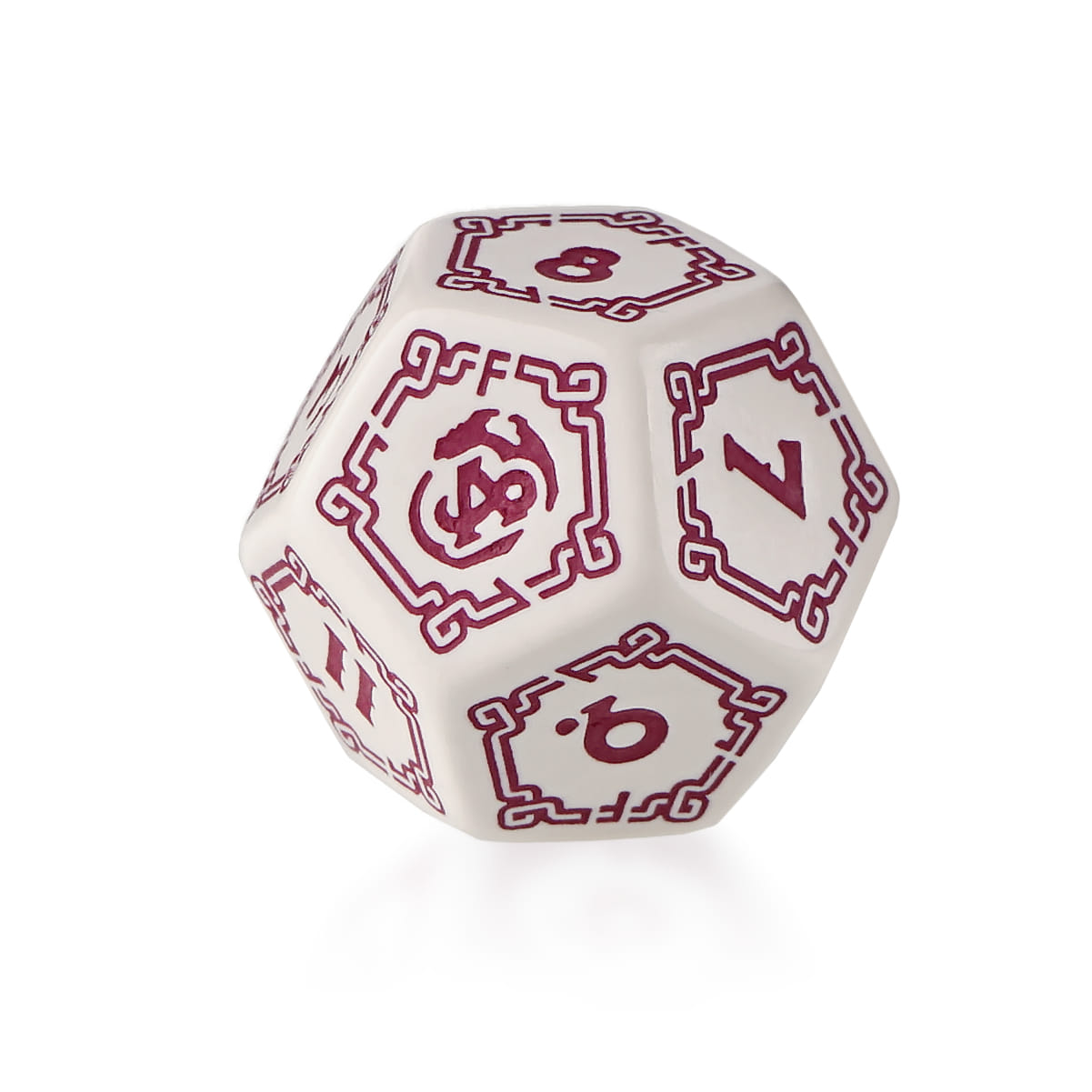 Speciální kostka pro RPG Jeskyně a draci s dvanácti stranami. Kostka má místo nejvyššího čísla logo Jeskyní a draků.