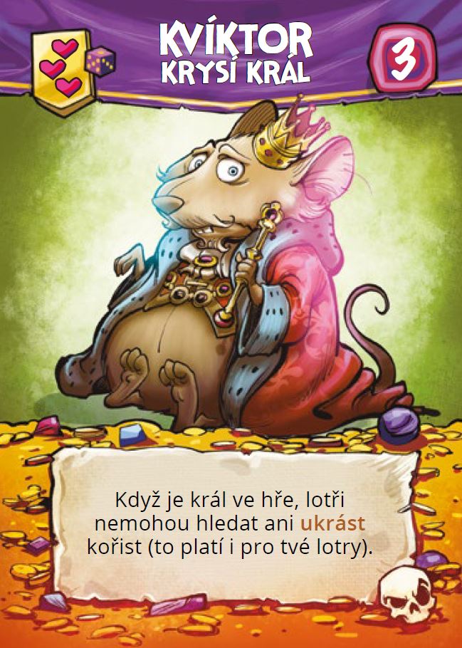 Připravte se na vzrušující akci s hrou Lotři! Tato rychlá a jednoduchá karetní hra, ilustrovaná talentovaným Riccardem Crosy, vás zavede do fantastického světa Temného pána Rigora Mortise. Vžijte se do rolí zlodějů, kteří se snaží získat kořist z pokladu Rigora Mortise a narušit plány svých protivníků.