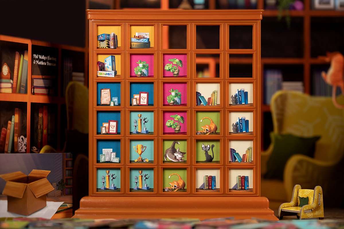 Moje knihovnička je strategická hra, ve které si uspořádáte své oblíbené předměty, jako jsou knihy, deskové hry, portréty a trofeje, na nové knihovničce. Kdybychom to vzali vážně, nezapomeňte nechat pár poliček volných pro kočky!