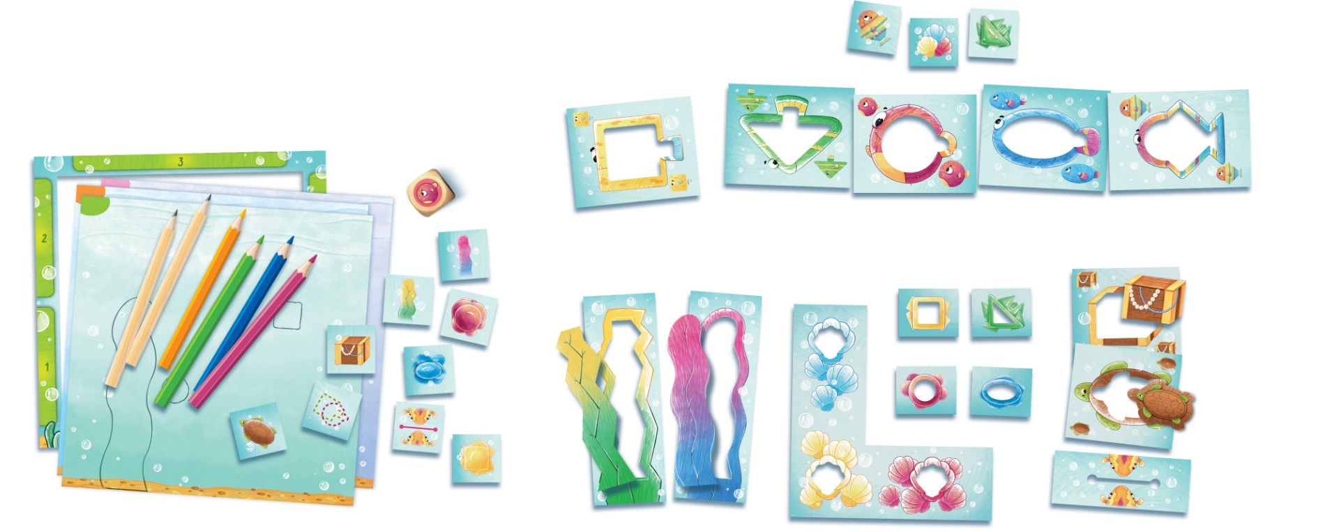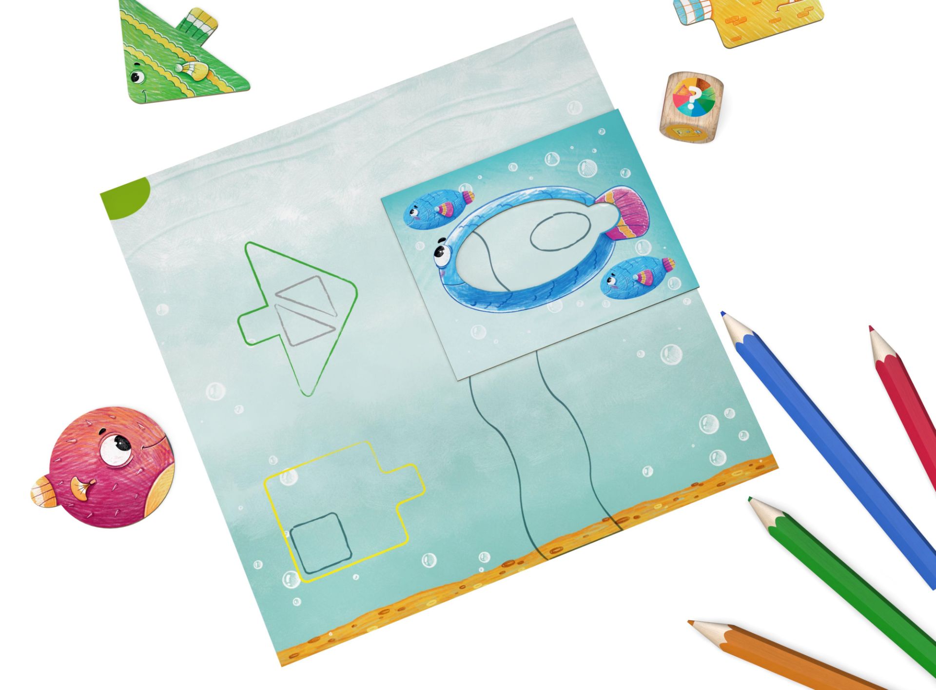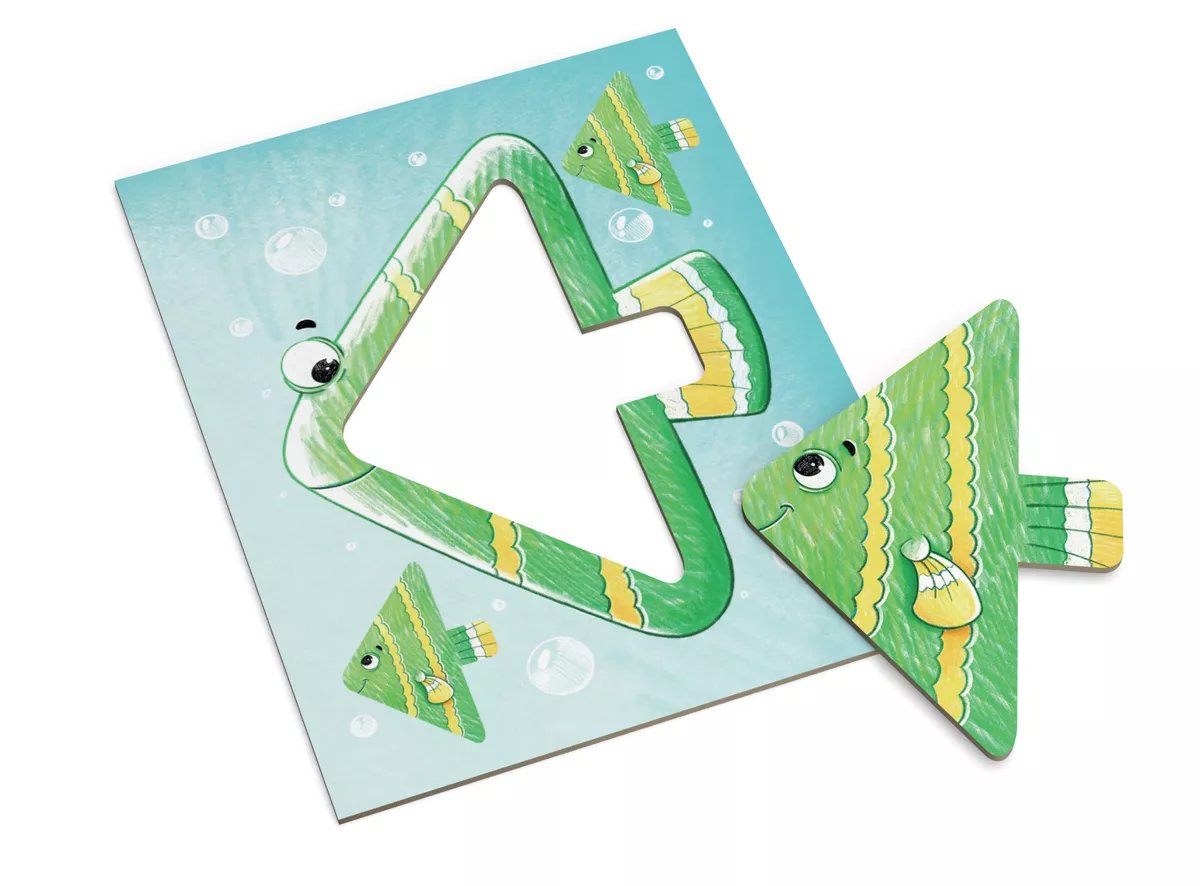 Ve hře Moje první akvárko budete zaplňovat své akvárium rybami tím, že je budete obkreslovat pomocí kartonových šablon a plnit různé úkoly, jako je krmení ryb nebo vytváření skrýší. Na konci hry vznikne obrázek, který můžete oživit barevnými pastelkami! Tato hra přirozeně rozvíjí zrakové vnímání a jemnou motoriku dětí, přičemž nabízí tři úrovně obtížnosti.