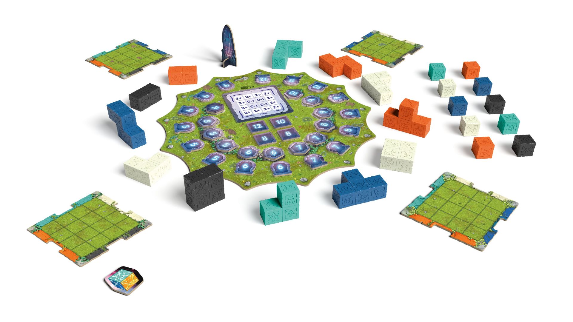 Monolyth je strategická hra, ve které hráči soutěží o vytvoření svých vlastních monolitů pomocí 3D polyomino kostiček. Cílem je skládat barevné plošky, dokončit úrovně a struktury odpovídající vzoru z náhodně vybrané karty struktury, kterou umístíte na hlavní herní plán spolu s odpovídajícími žetony. Hráči posouvají krystalový ukazatel a vybírají polyomino kostičky, které přidávají na svou desku, nebo je mohou vyřadit a získat bloky v odpovídající barvě. S postupem hry mohou hráči plnit úkoly proroctví a získávat body za splněné požadavky a úspěšně naplněné struktury. Hráči se snaží dokončit své 3D monolity, které mohou mít rozměr 4x4x3 v hře pro 3-4 hráče a 4x4x4 v hře pro 1-2 hráče. Hra končí, když někdo dokončí svůj monolit a body se počítají podle žetonů struktury, úrovní a proroctví. Obsah balení zahrnuje veškeré nezbytné komponenty pro zábavné a strategické hraní. Připravte se na výzvu a osvědčte své dovednosti při skládání a plánování, abyste se stali vítězem v této jedinečné hře!