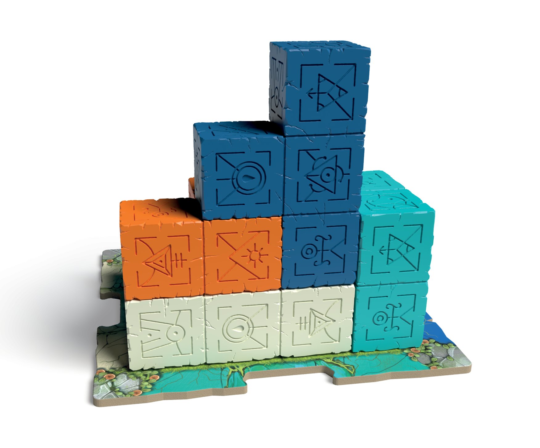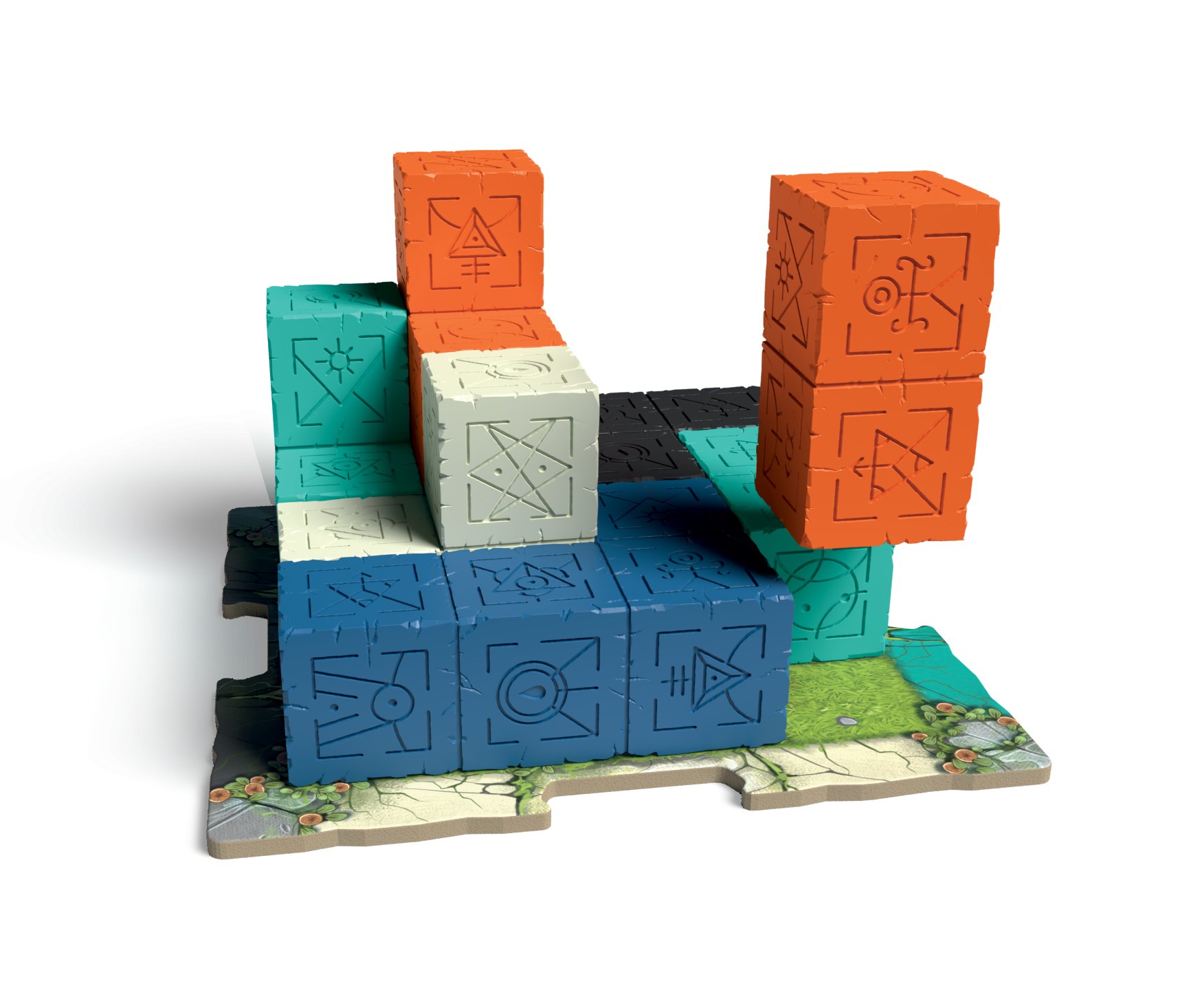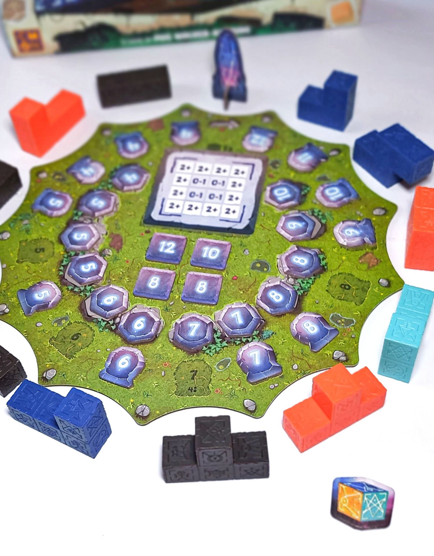 Pro nastavení hry si náhodně vyberte kartu struktury a umístěte ji na hlavní herní plán spolu s odpovídajícími žetony struktury, žetony úrovně a žetony proroctví na základě počtu hráčů. Umístěte krystalový ukazatel vedle hlavního plánu, poté vytáhněte dvanáct náhodných polyomino kostiček z krabice a rozložte je do kruhu kolem herního plánu. Polyomino kostičky jsou k dispozici v pěti barvách a všechny 1x1 bloky v těchto barvách jsou uloženy na straně.