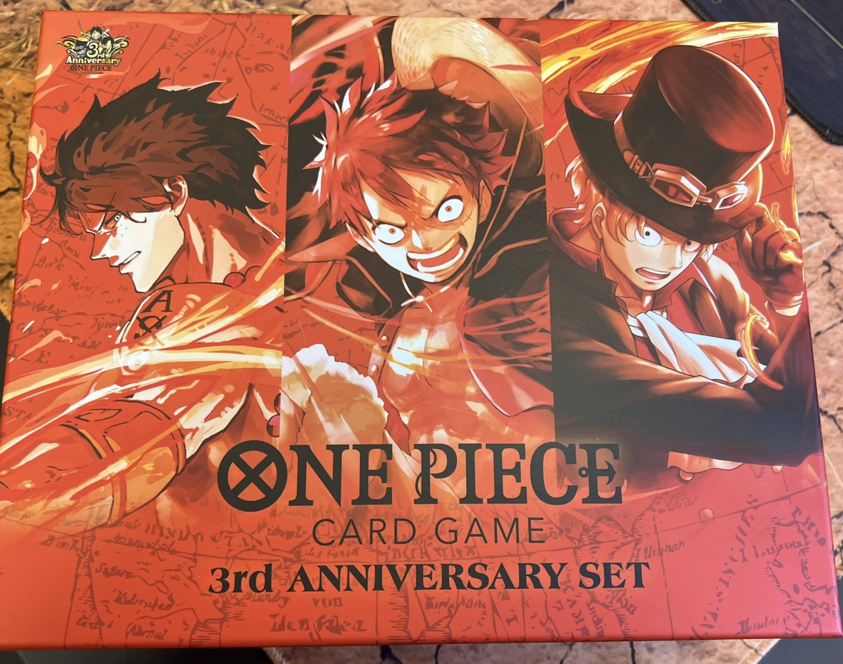 Japanese 3rd Anniversary Set představuje speciální sadu pro sběratelskou karetní hru One Piece TCG, která obsahuje speciální karty i komponenty, které ocení jak sběratelé, tak i hráči. Karty pochází ze starších řad, nicméně mají alternativní provedení, jež nelze sehnat nikde jinde. Součástí balení je konkrétně následující: