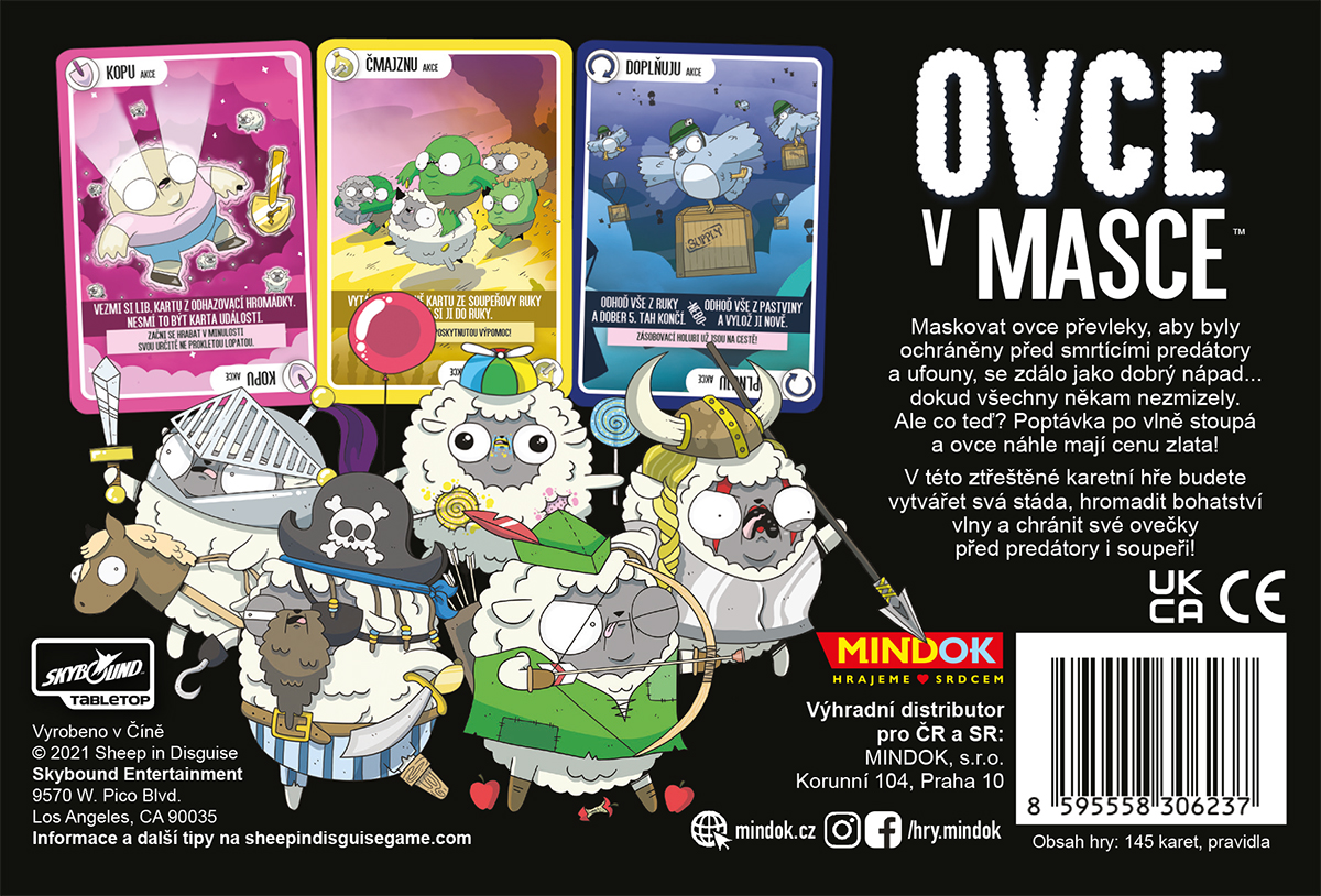 Ovce v masce je rychlá party karetní hra pro 2–6 hráčů od 10 let, kde hráči sbírají sady tří ovcí a vytvářejí stáda, ale zároveň se musí bránit útokům a záludnostem ostatních hráčů. Vítězí ten, kdo jako první vytvoří požadovaný počet skrytých stád.