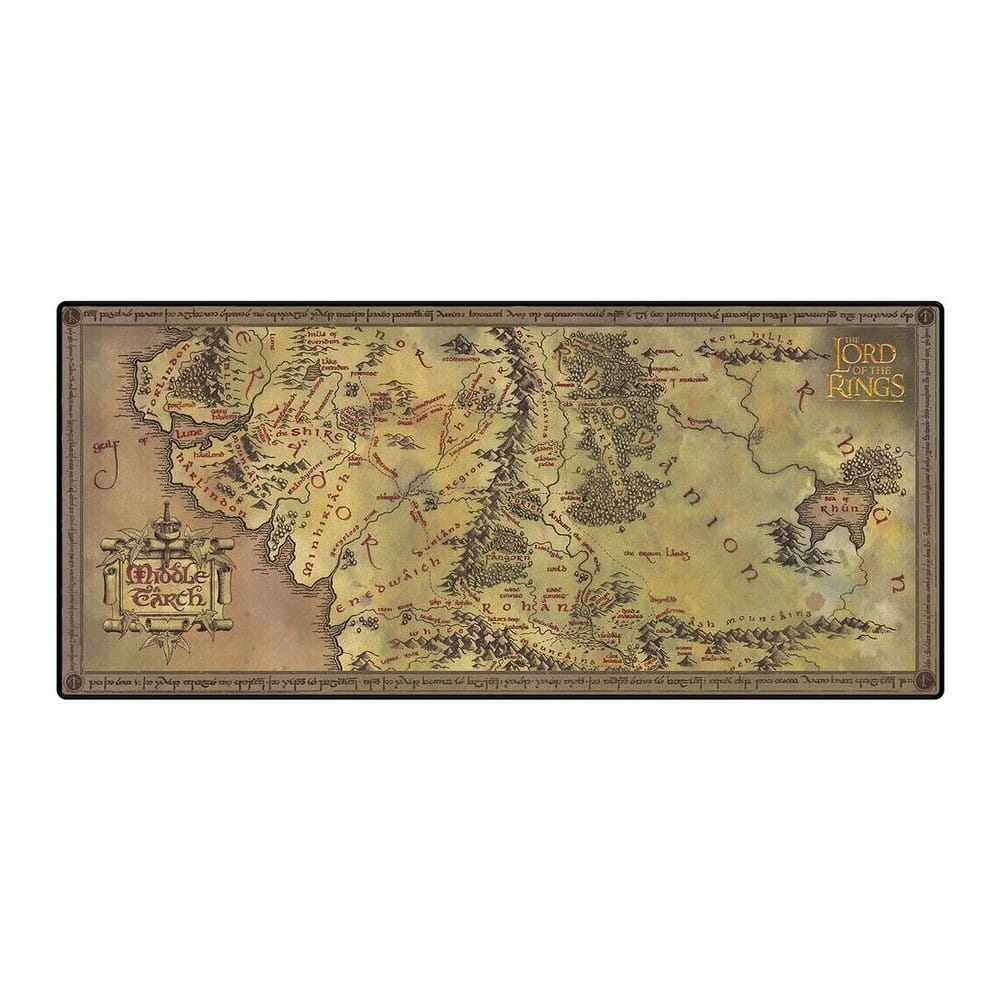 Podložka na tvůj herní či pracovní stůl s mapou Středozemě tě přenese do fantastického světa Pána prstenů a Hobita! Skvělý pomocník pro myš a klávesnici má voděodolný a omyvatelný povrch, který maximalizuje přesnost pohybu tvé myši. Zesílené boční švy zvyšují odolnost a kvalitní potisk září jasnými barvami. Podložka má pogumovanou spodní část proti skluzu, takže bude držet na svém místě, ať už se budeš právě toulat Krajem nebo máš namířeno do Mordoru. Velikost podložky je 81 x 36 cm.
