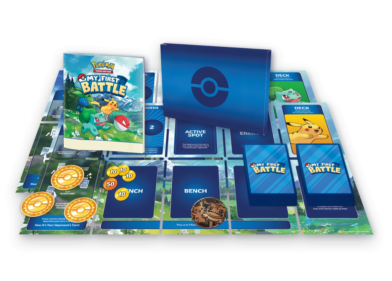 Ideální úvod do Pokémon TCG pro všechny začínající hráče. Díky českým a slovenským pravidlům jsou první kroky do světa Pokémonů jednodušší než kdy předtím! Balení obsahuje dva mini balíčky určené pro hru dvou hráčů. Tvoje dobrodružství v Pokémon TCG právě začíná! Udělej první krok do světa karetní hry Pokémon. Dva druhy balení: Pikachu a Bulbasaur nebo Squirtle a Charmander. Obsah balení: • Česká a slovenská pravidla, • 2 mini balíčky po 17 kartách, • 2 herní podložky, • 1 krabička na karty, • žetony zranění, • žetony odměn, • 1 kovová mince.