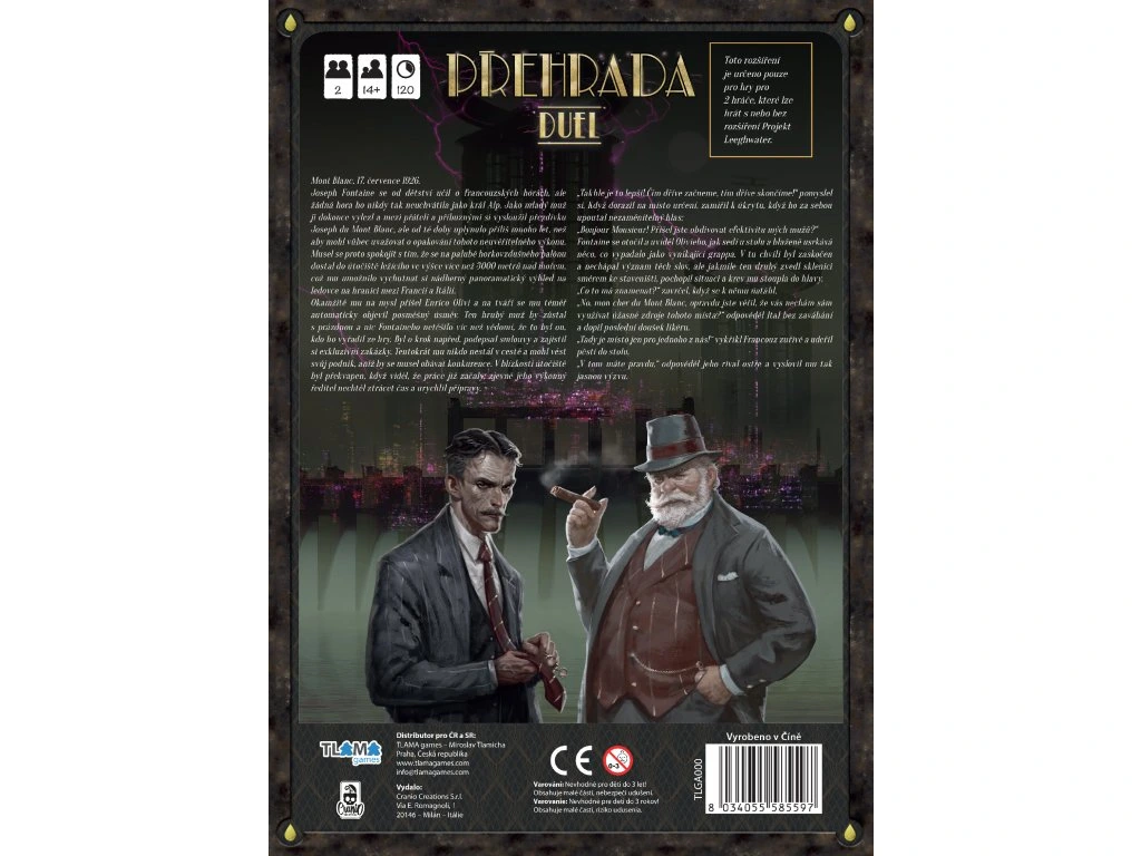 Vítejte na počátku vodní revoluce v hře **Přehrada**! Píše se rok 1922, kdy svět obnovuje svou sílu po Velké válce díky novým hydroelektrickým technologiím podle návrhů legendárního Nikoly Tesly. V Alpách se však situace vyostřuje a vy se ujmete role vedoucího mezinárodní společnosti, která usiluje o vybudování hydroelektrického impéria. Hra je určena pro 1-4 hráče od 14 let a během pěti kol budete plánovat stavby a akce související s hydroelektrickou infrastrukturou. Klíčem k úspěchu je strategické umístění vašich staveb a efektivní využití vody jako nejcennějšího zdroje. Ovládněte vodu, vyprodukujte energii a splňte smlouvy! **Herní mechaniky zahrnují:** - Řízení zdrojů a strategické umisťování - Budování a vylepšování přehrad - Využívání tlakových tunelů napojených na turbíny Hra obsahuje širokou škálu komponentů, včetně herního plánu, desek managementu, stupnice energie a desek patentového úřadu. Obsahuje také množství žetonů, karet a technologií, což přispívá k hlubokému hernímu zážitku.