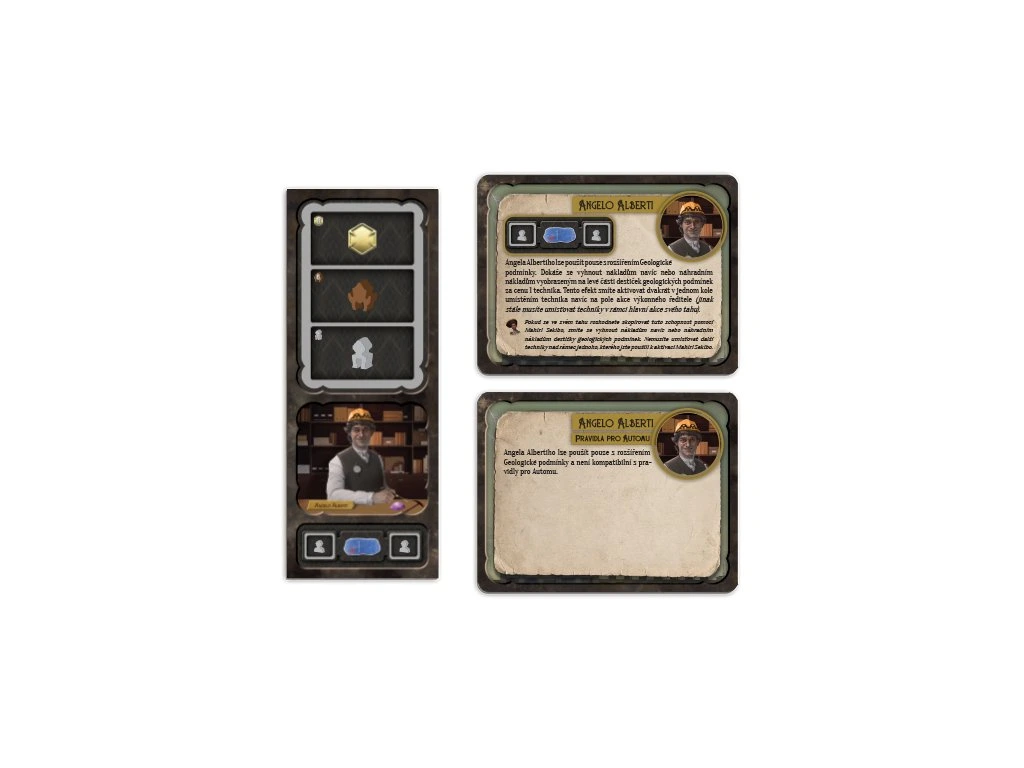 Toto malé rozšíření pro hru Přehrada vám představí dalšího výkonného ředitele. Je jím Angelo Alberti. Potřebujete k němu malé rozšíření Geologické podmínky.