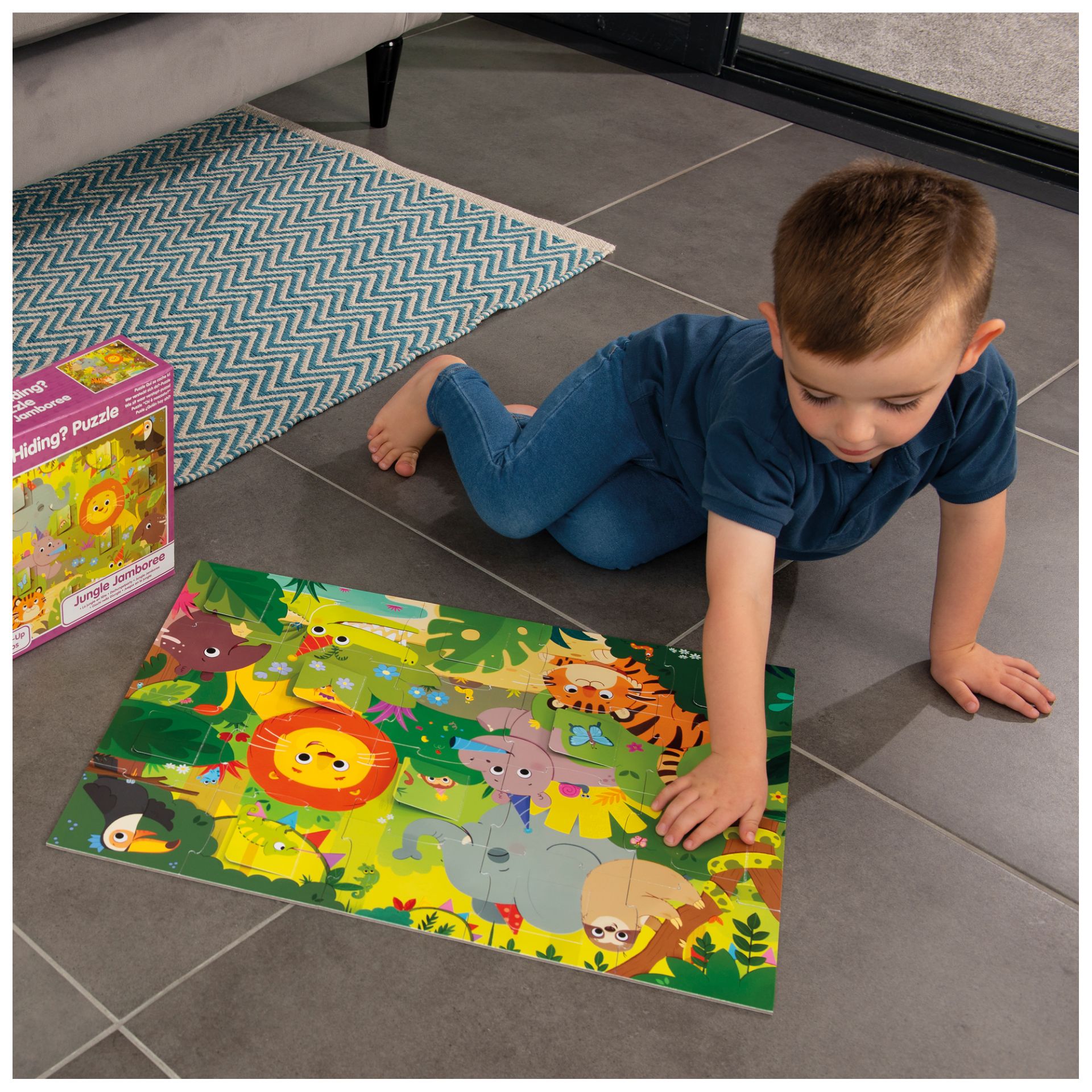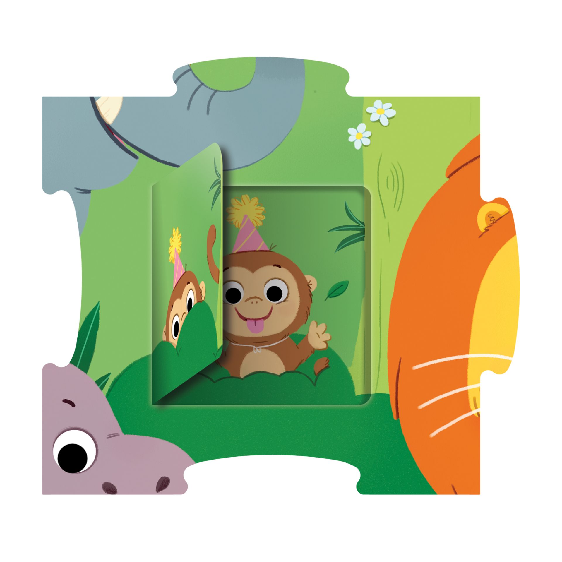 Tyto puzzle přináší zábavné scény z džungle s otevíracími okénky, které dětem umožňují prozkoumat, co se pod nimi skrývá