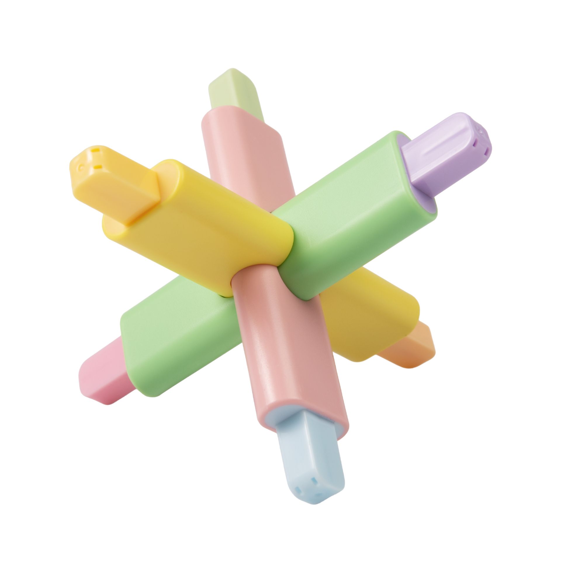 Tato sada obsahuje 3 oboustranné fixy s neonovými barvami (růžovou, fialovou, zelenou, modrou, oranžovou, žlutou), které se kromě psaní dají složit do originálního hlavolamu.