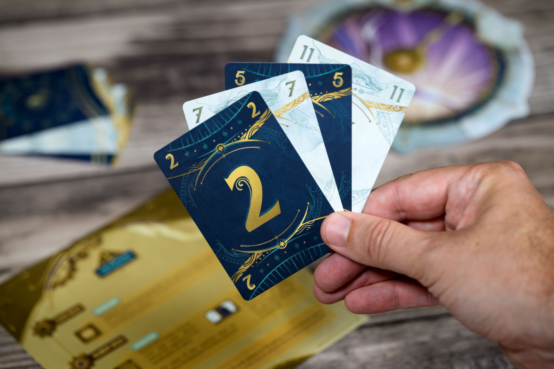 Prohlédněte si společně hodiny a naplánujte si strategii. Postupně umísťujte své karty lícem dolů kolem ciferníku hodin a dodržujte pravidla pro aktuální zkoušku. Počínaje segmentem, na který ukazuje hodinová ručička, musíte docílit, aby se součet hodnot karet v každém segmentu zvyšoval ve směru hodinových ručiček od nejnižšího po nejvyšší.