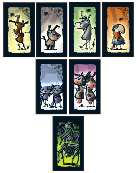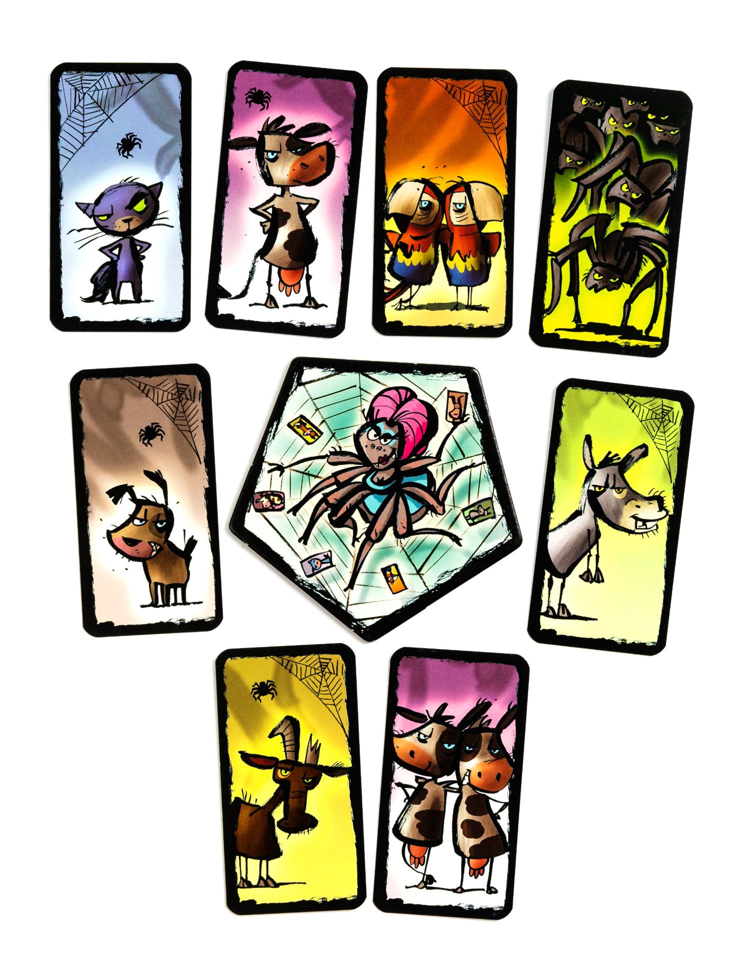Hra se skládá z 120 karet zvířat (pes, kráva, osel, koza, kočka a papoušek) a 5 speciálních karet tarantulí.