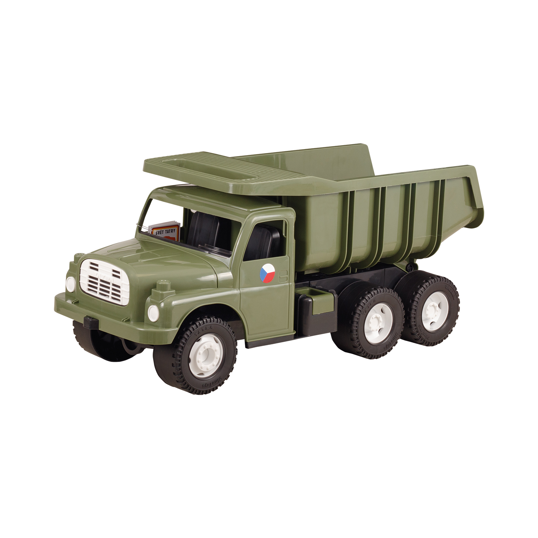 Umí váš potomek ocenit u kamarádů z pískoviště disciplínu? Nebo prostě jen miluje hraní na vojáky? Pak je pro něj Tatra v khaki barvě s českou vlaječkou ta pravá. Legendární náklaďák s vyklápěcí korbou převlečený do vojenského hávu potěší všechny akční děti i jejich tatínky. Nová verze má madlo nad kabinou, odolný volant a hlavně výjimečnou nosnost.