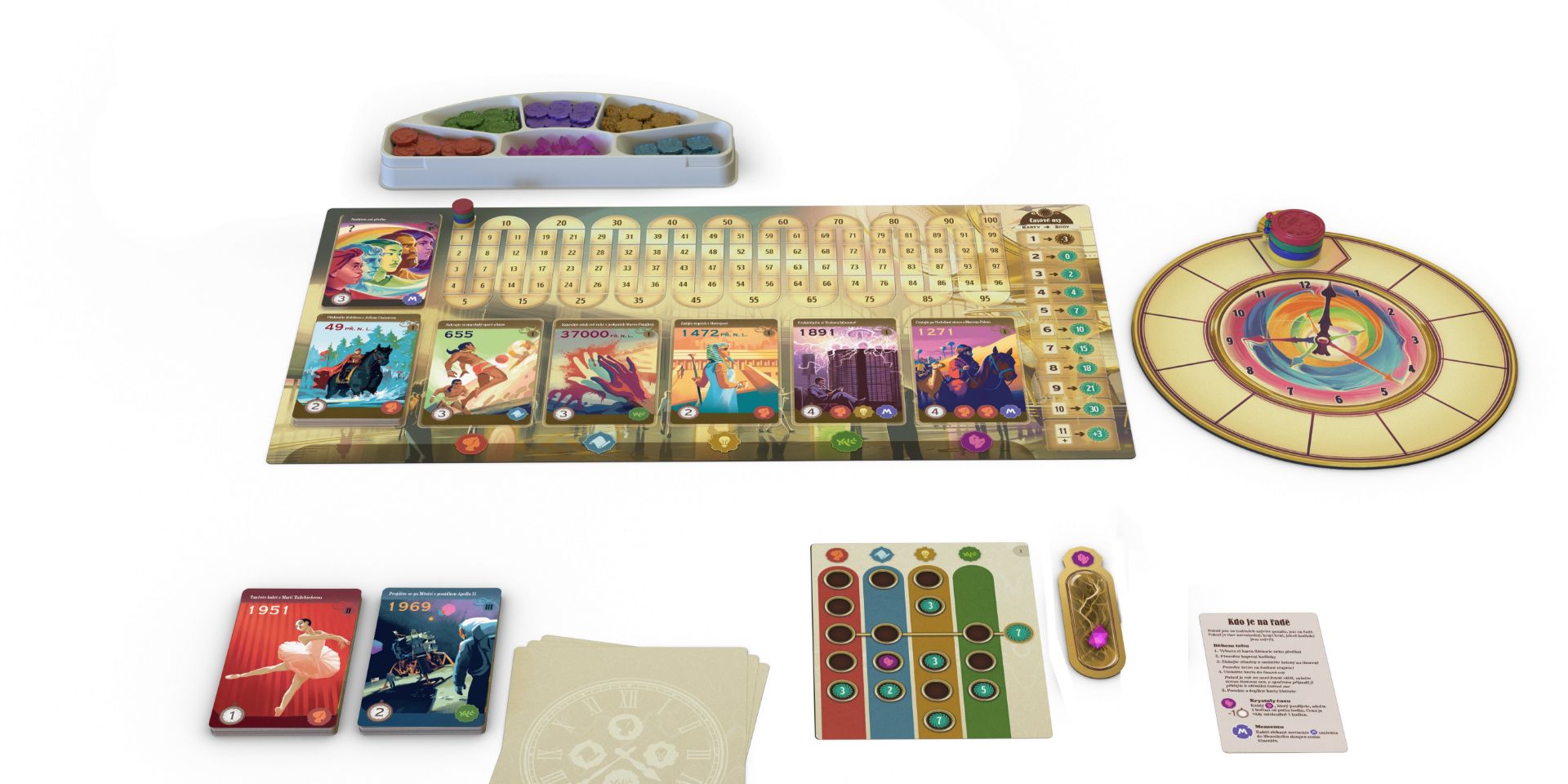 Vítejte v cestovní kanceláři Wayback Tours! Chystáte se na třídenní výpravu do minulosti, kde procestujete tisíce let ve stroji času a zažijete velké okamžiky naší historie. Výpravy do minulosti probíhají ve třech kolech, z nichž každé představuje jeden den vaší cesty. Každý den budete navštěvovat různé historické události, na kterých strávíte různý počet hodin. Během vaší cesty budete získávat body za dodržování itineráře a návštěvu historických událostí v chronologickém pořadí. Připravte se na úžasné dobrodružství! Tato hra obsahuje více než 100 karet historie, přičemž každá karta je krásně ilustrovaná a doplněná poučnými texty, které popisují rozmanité a fascinující události z historie světa. Česká verze hry je 2. edice a zahrnuje skvělý sólový mód, který byl v 1. edici vydán samostatně. Obsah balení: - 108 karet historie - 12 karet předků - 1 herní plán - 4 kapesní hodinky - 4 herní žetony - 84 žetonů zážitků - 1 hodiny - 4 zásobníky na krystaly času - 24 itinerářů - 20 krystalů času - 4 referenční karty - 1 pravidla - 1 rejstřík roků - 24 karet časových vírů - 4 žetony časového víru - 1 pravidla pro režim hry s časovými víry - 4 itineráře pro sólový režim Připravte se na úžasnou cestu! Naši tvůrci navrhli hru Trekking through History tak, aby byla vhodná pro hráče i nehráče, což z ní činí skvělou volbu pro všechny. Cílem hry je zažít třídenní tour po lidské historii, kdy budete putovat tisíce let zpět a prozkoumávat velké momenty minulosti. Hra se hraje ve třech kolech, přičemž každé kolo představuje jeden den vaší cesty. Každý den navštívíte sérii historických událostí, na kterých strávíte různý čas. Během svého tahu si zvolíte jednu historickou událost a strávíte určitý počet hodin její návštěvou. Tím získáte přínosy, například odškrtávání položek na itineráři pro body a získání krystalů času, které vám umožní ohnout prostor-čas na další tahy. Hráč s nejvyšším počtem bodů na konci třetího kola vyhrává! Zažijte nezapomenutelnou cestu a objevte kouzlo historie s Trekking through History!